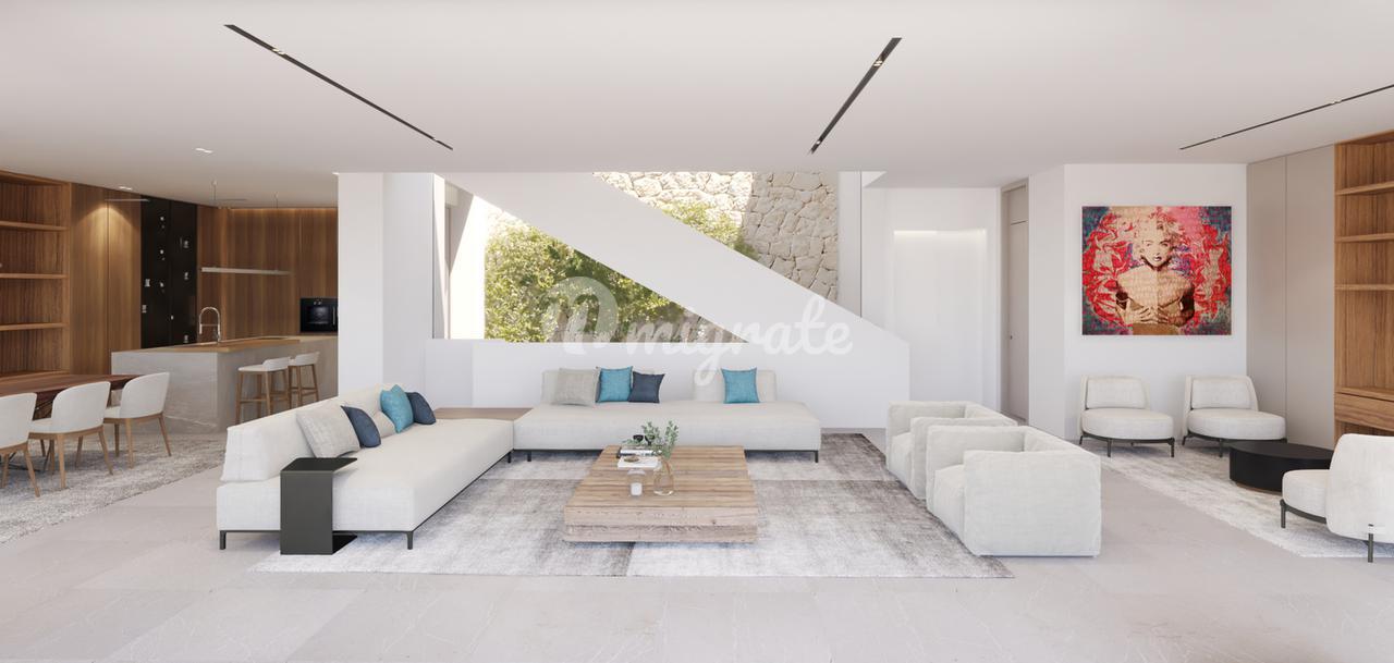 Эта очень инновационная дизайнерская вилла имеет превосходное распределение и высококачественные материалы. Недвижимость имеет очень хороший вид на море и расположена в Коста ден Бланес, популярной урбанизации всего в 10 минутах езды от центра города Пальма. В настоящее время он находится в стадии строительства и должен быть завершен в течение следующих 14 месяцев. Чистая жилая площадь составит около 482 м2. Вилла будет построена на 3 уровнях и будет иметь 3 большие спальни с ванными комнатами, все с видом на море и выходом на террасу.
