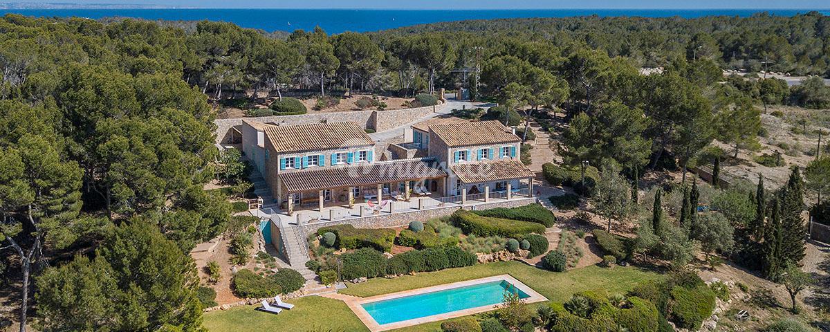 Это свойство абсолютно уникально в районе Соль-де-Майорка. Он расположен между пристанями Порт-Адриано и Пуэрто-Порталс, а лучшее поле для гольфа на острове Поньенте также находится в непосредственной близости. Эта настоящая усадьба из натурального камня расположена на участке площадью ок. 32.000 м2. Он окружен красивой природой и имеет прекрасный вид на обширную страну и горы Трамунтана.
