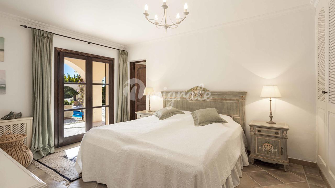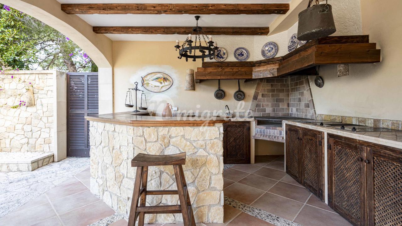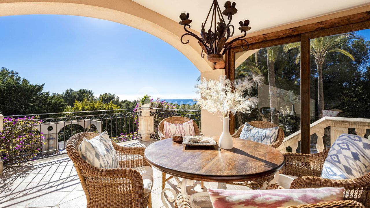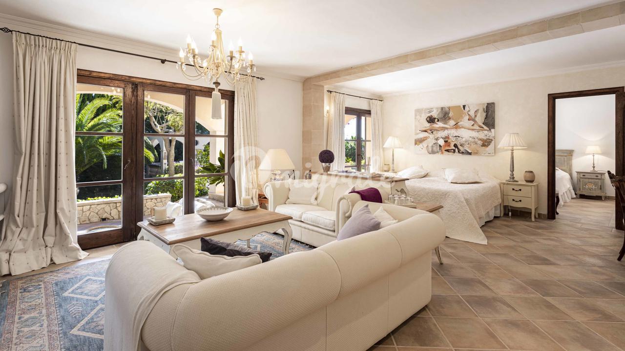 В главном здании на уровне бассейна вы найдете две красиво обставленные спальни с ванными комнатами, одна из которых представляет собой огромную гостиную. Оттуда, поднявшись по лестнице, вы попадете в гостиную открытой планировки, кухню и столовую с прилегающими полузакрытыми террасами. На верхнем этаже находится главная спальня с огромной гардеробной, красивой ванной комнатой и очаровательным видом на море, как с кровати, так и с романтической террасы для завтрака. Особенно ни с чем не сравнимы закаты из-за южной ориентации отеля. Деревянные элементы окон и дверей все новые и были специально отделаны в деревенском и средиземноморском стиле. Вилла, которая была обставлена с вниманием к деталям, продается вместе с ее отделкой. Кроме того, он идеально поддерживается во всех отношениях, и установленные услуги и контакты, конечно, могут быть переданы без каких-либо проблем. Вы заходите и чувствуете себя как дома, вам просто необходимо лично познакомиться с этой виллой. Коста-де-ла-Кальма - это, как следует из названия, красивый тихий прибрежный городок. Здесь вилла расположена в очень престижном жилом районе. Благодаря оптимальному сообщению с автомагистралью вы сможете быстро добраться до Пальмы и аэропорта. Кроме того, всего в нескольких минутах езды на машине находятся такие популярные места, как Санта Понса и Порт Адриано, где вы можете посетить самые эксклюзивные поля для гольфа, пристани для яхт, а также бутики и рестораны.