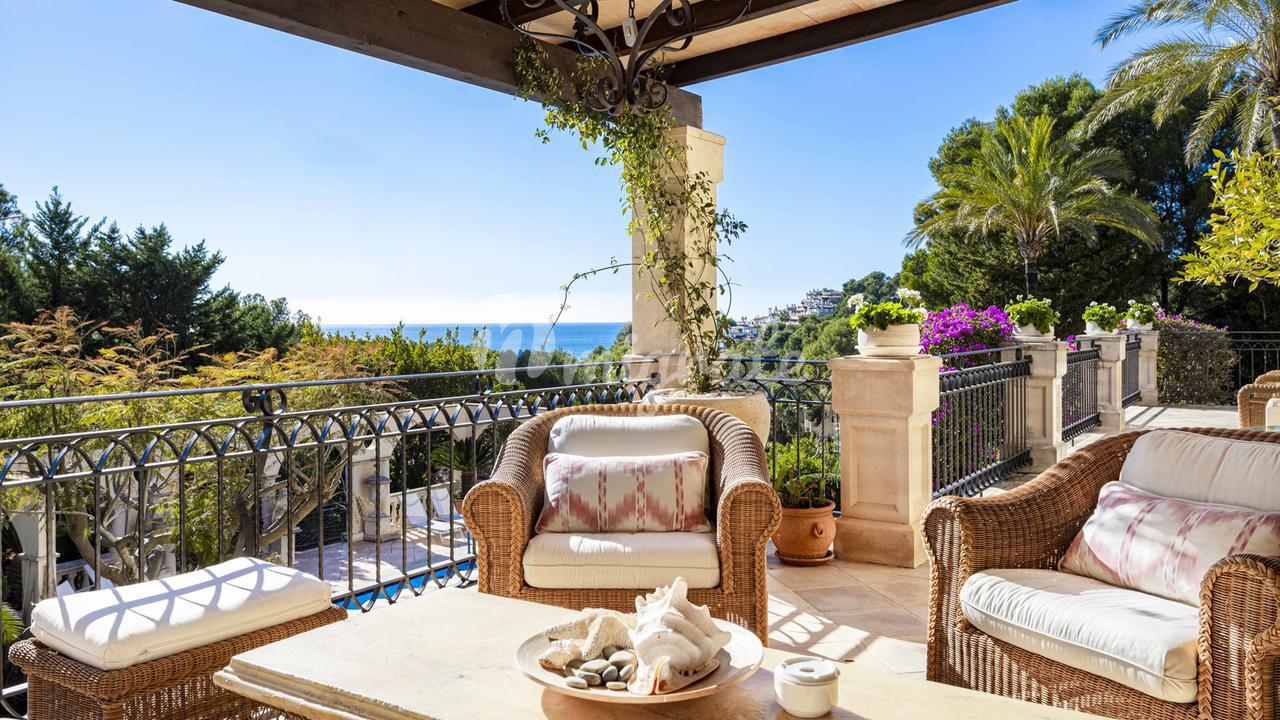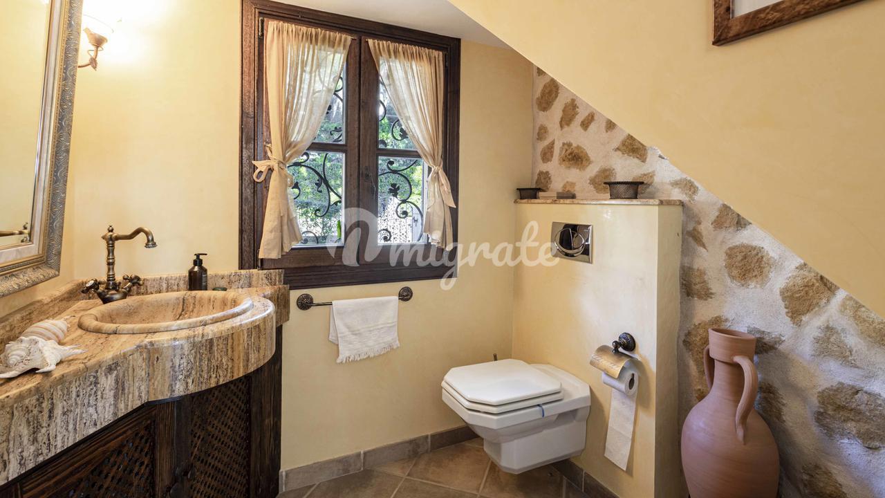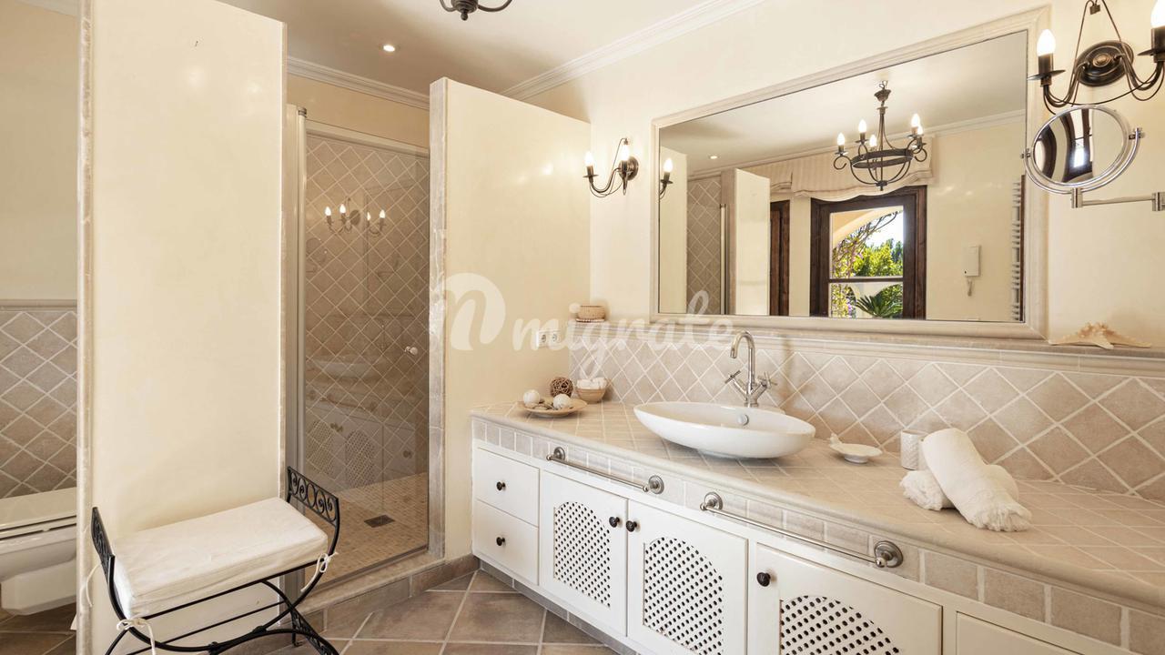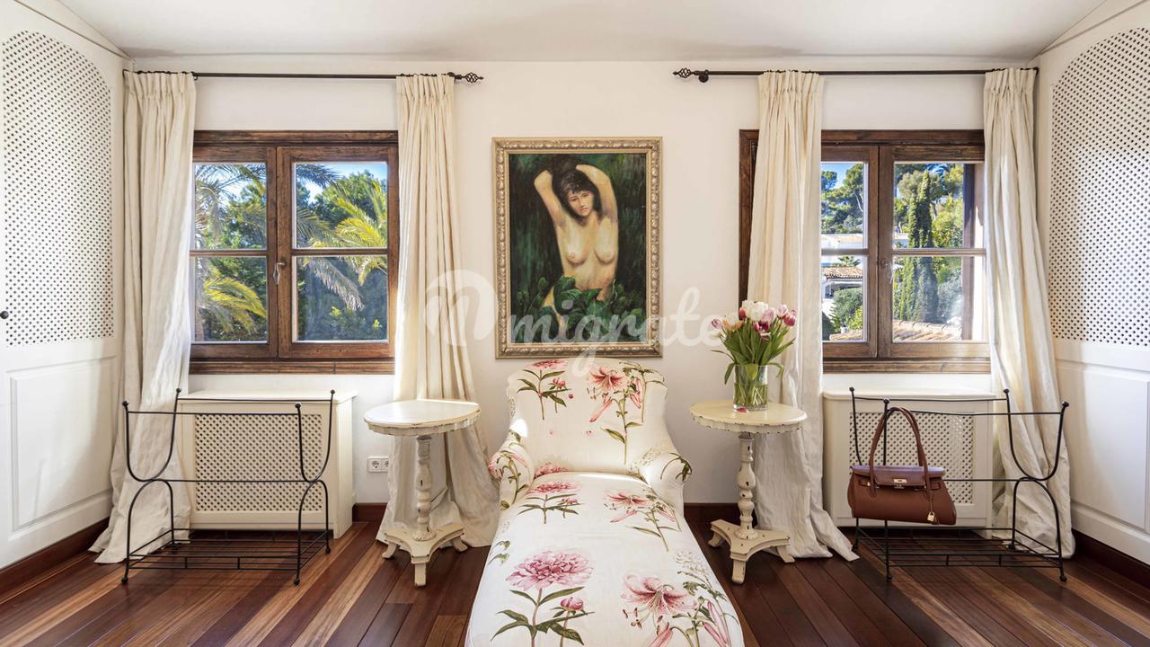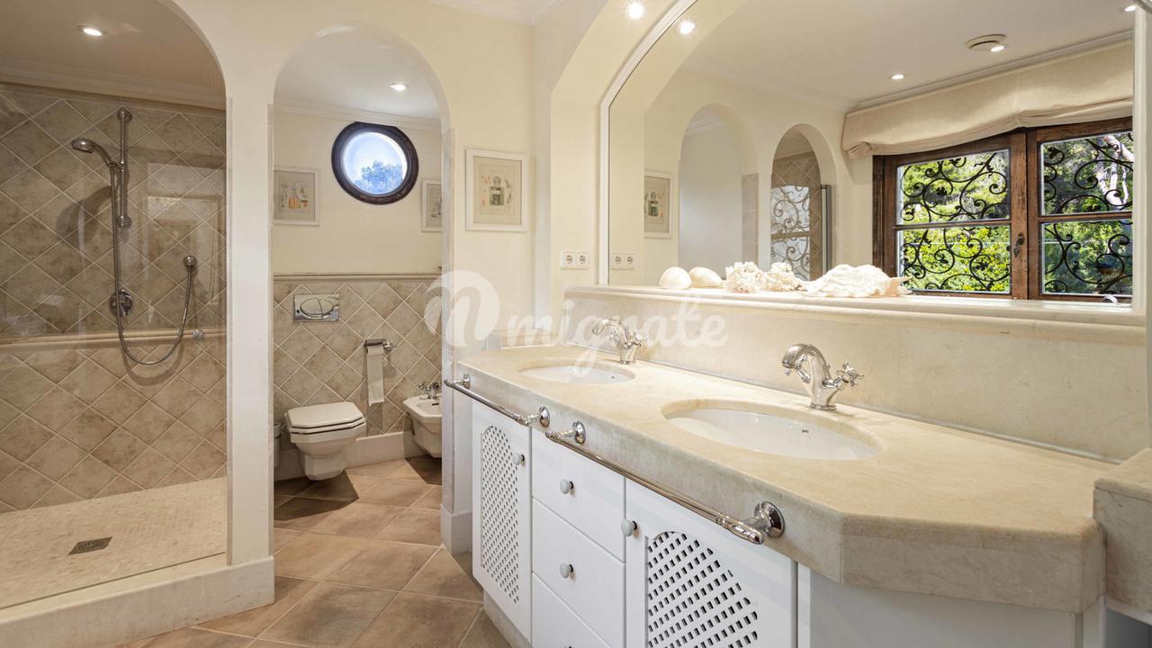 В главном здании на уровне бассейна вы найдете две красиво обставленные спальни с ванными комнатами, одна из которых представляет собой огромную гостиную. Оттуда, поднявшись по лестнице, вы попадете в гостиную открытой планировки, кухню и столовую с прилегающими полузакрытыми террасами. На верхнем этаже находится главная спальня с огромной гардеробной, красивой ванной комнатой и очаровательным видом на море, как с кровати, так и с романтической террасы для завтрака. Особенно ни с чем не сравнимы закаты из-за южной ориентации отеля. Деревянные элементы окон и дверей все новые и были специально отделаны в деревенском и средиземноморском стиле. Вилла, которая была обставлена с вниманием к деталям, продается вместе с ее отделкой. Кроме того, он идеально поддерживается во всех отношениях, и установленные услуги и контакты, конечно, могут быть переданы без каких-либо проблем. Вы заходите и чувствуете себя как дома, вам просто необходимо лично познакомиться с этой виллой. Коста-де-ла-Кальма - это, как следует из названия, красивый тихий прибрежный городок. Здесь вилла расположена в очень престижном жилом районе. Благодаря оптимальному сообщению с автомагистралью вы сможете быстро добраться до Пальмы и аэропорта. Кроме того, всего в нескольких минутах езды на машине находятся такие популярные места, как Санта Понса и Порт Адриано, где вы можете посетить самые эксклюзивные поля для гольфа, пристани для яхт, а также бутики и рестораны.