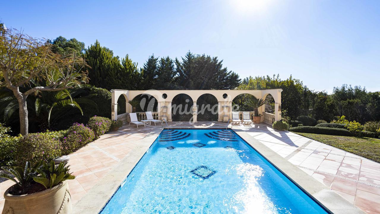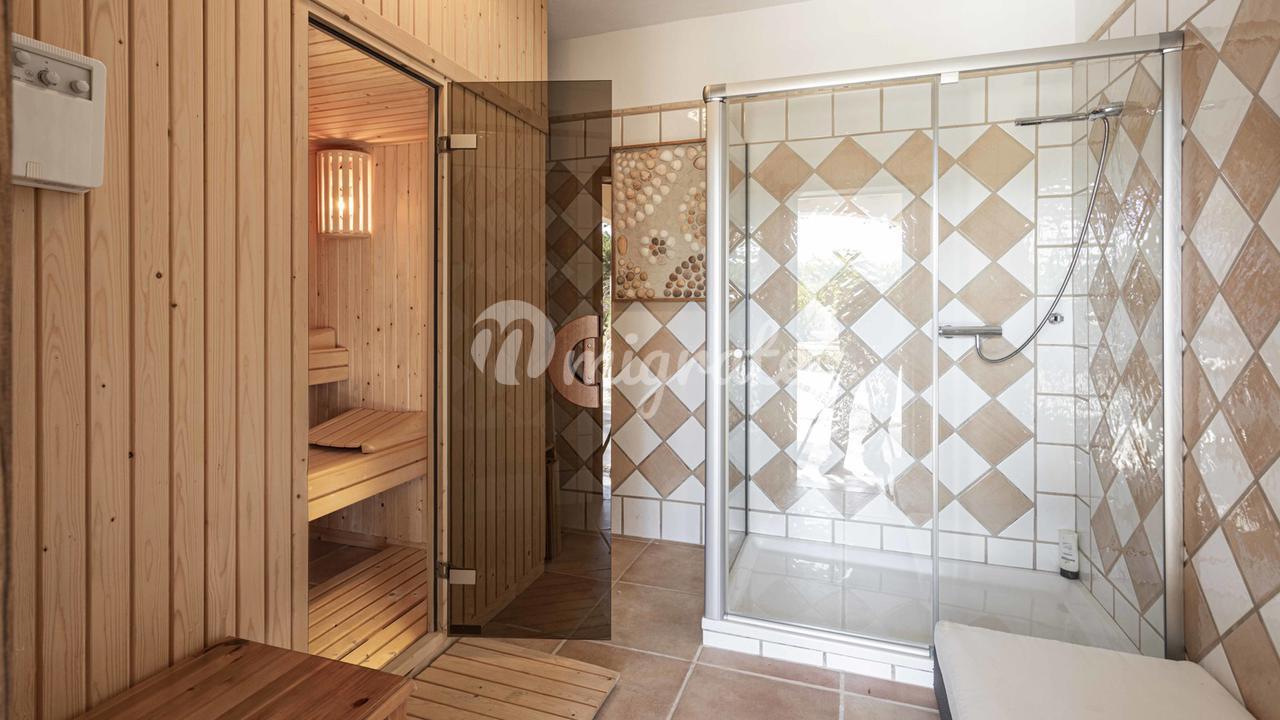 Вы входите в этот романтический отель через каменные арки красивой формы и массивные деревянные двери. Во флигеле есть гараж на 2 машины, винный погреб и подсобное помещение, где вы можете работать с прекрасным видом. Вниз по лестнице ведет огромная терраса с бассейном, садом и пешеходной дорожкой. Поистине живописный, похожий на парк пейзаж. Благодаря уединенному расположению, защищенному от посторонних взглядов, это идеальное место для приглашения знакомых, празднования вечеринок и спокойного купания. Справа находится ухоженная летняя кухня с элементами из массива дерева немецкого производства и большим столом. В дополнение к барбекю здесь вы также можете воспользоваться высококачественными варочными панелями. Рядом находится ванная комната с душем и сауной, после использования вы можете прыгнуть прямо в бассейн, чтобы освежиться.