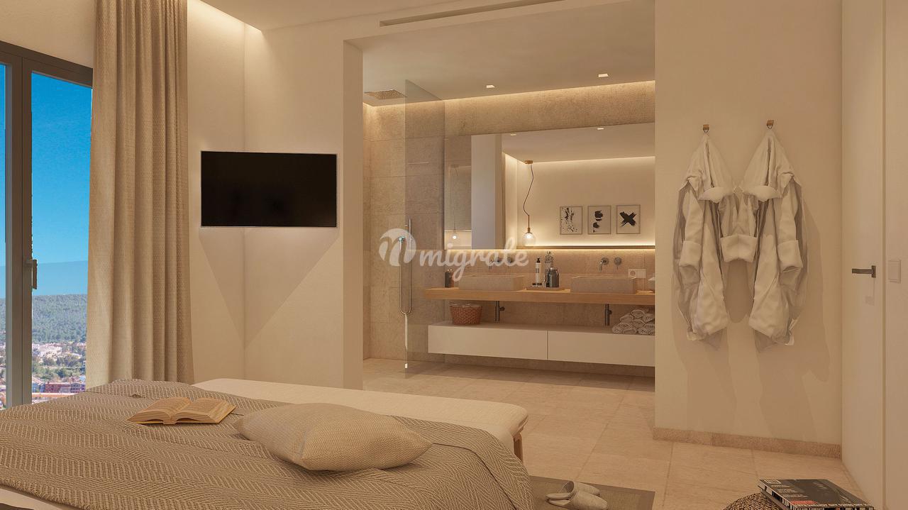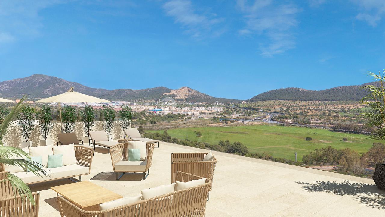 Поскольку здание расположено на возвышенности, даже с нижних этажей открывается прекрасный вид на поля для гольфа, зеленые зоны и дальнейшие окрестности Санта-Понсы и горы. С 3-го этажа вы можете наслаждаться видом на море. Во всех квартирах есть 4 спальни с 3 ванными комнатами, 2 из которых с собственными ванными комнатами. Кроме того, в распоряжении гостей большая гостиная и обеденная зона открытой планировки, а также прачечная. Квартиры с садом имеют частные зеленые зоны, а пентхаусы имеют частную террасу на крыше с бассейном и фантастическим видом на море. Все остальные квартиры имеют две крытые террасы, на которые можно попасть из гостиной и обеденной зоны, а также из главной спальни.