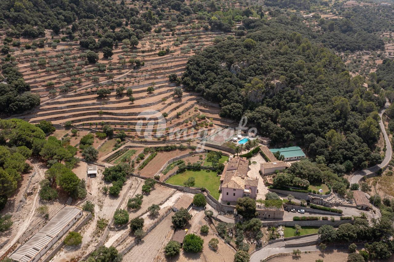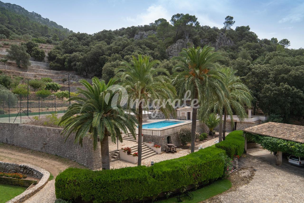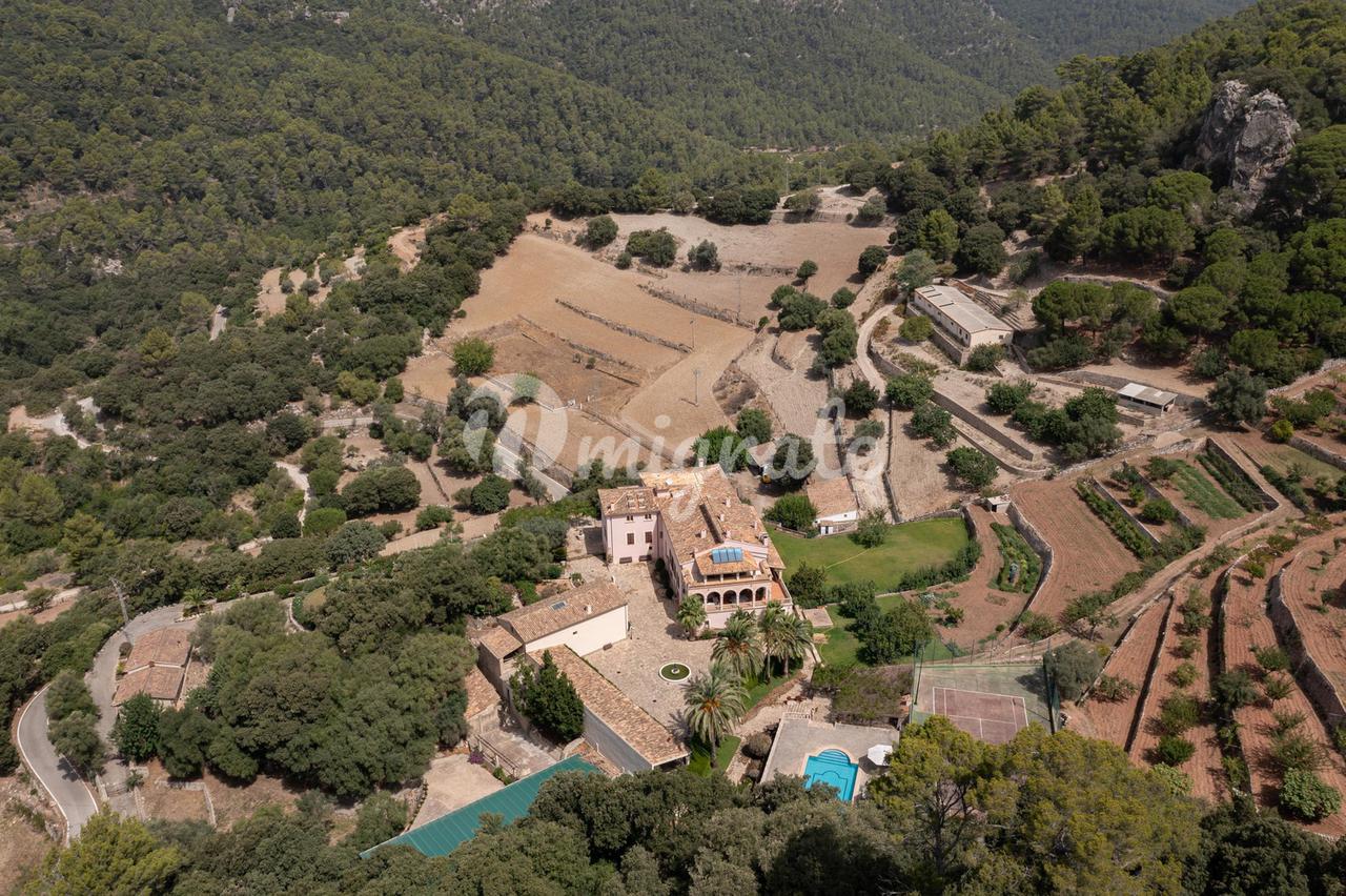 Особняк окружен драгоценными горами Трамонтана, имеет собственный теннисный корт и большой открытый бассейн. На территории также можно найти старый оливковый пресс, чтобы сделать собственное оливковое масло, на территории достаточно оливок для этого, кроме того, есть фруктовые деревья и собственный огород.