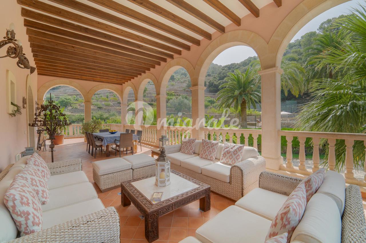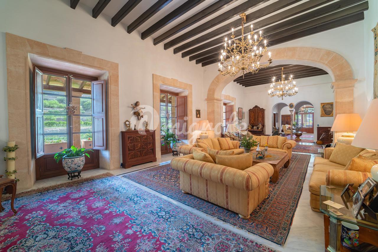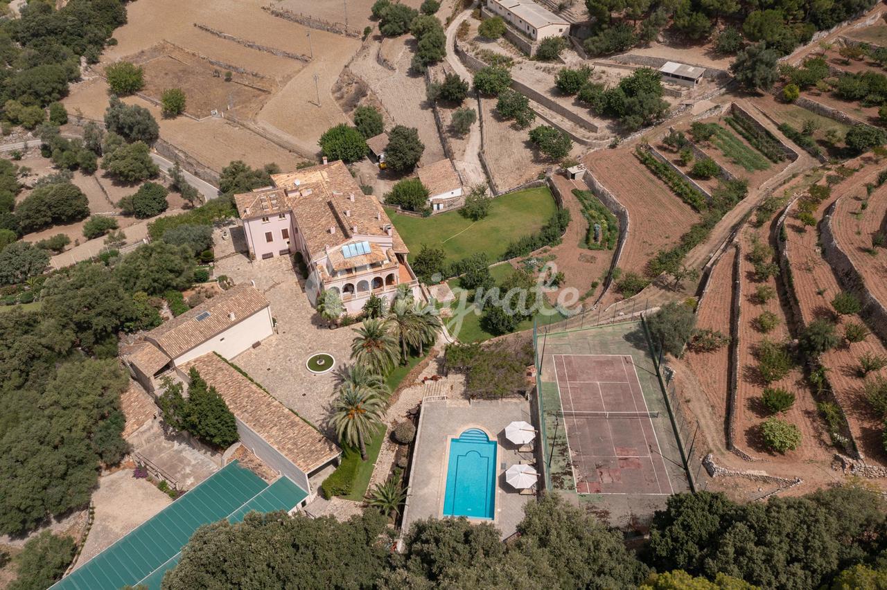 Особняк окружен драгоценными горами Трамонтана, имеет собственный теннисный корт и большой открытый бассейн. На территории также можно найти старый оливковый пресс, чтобы сделать собственное оливковое масло, на территории достаточно оливок для этого, кроме того, есть фруктовые деревья и собственный огород.