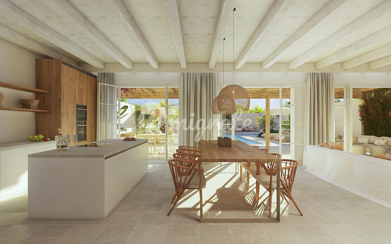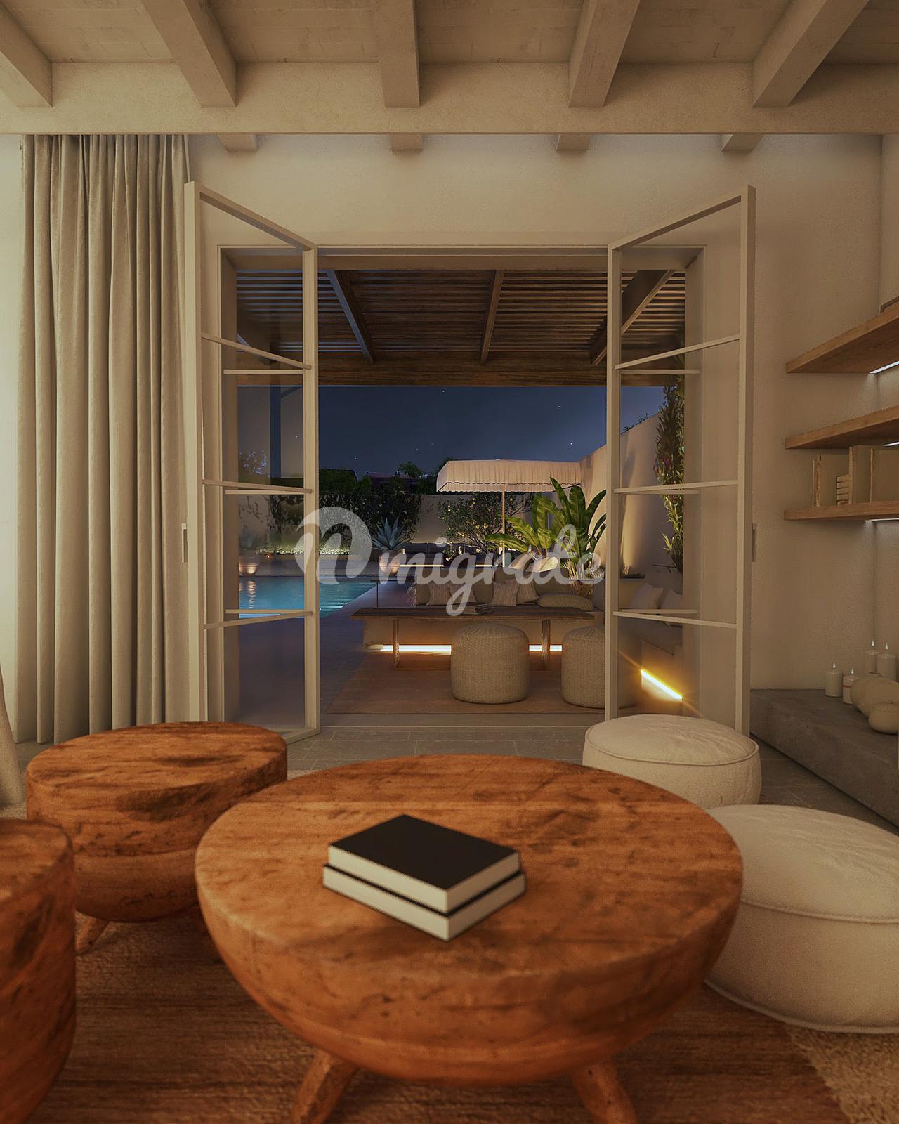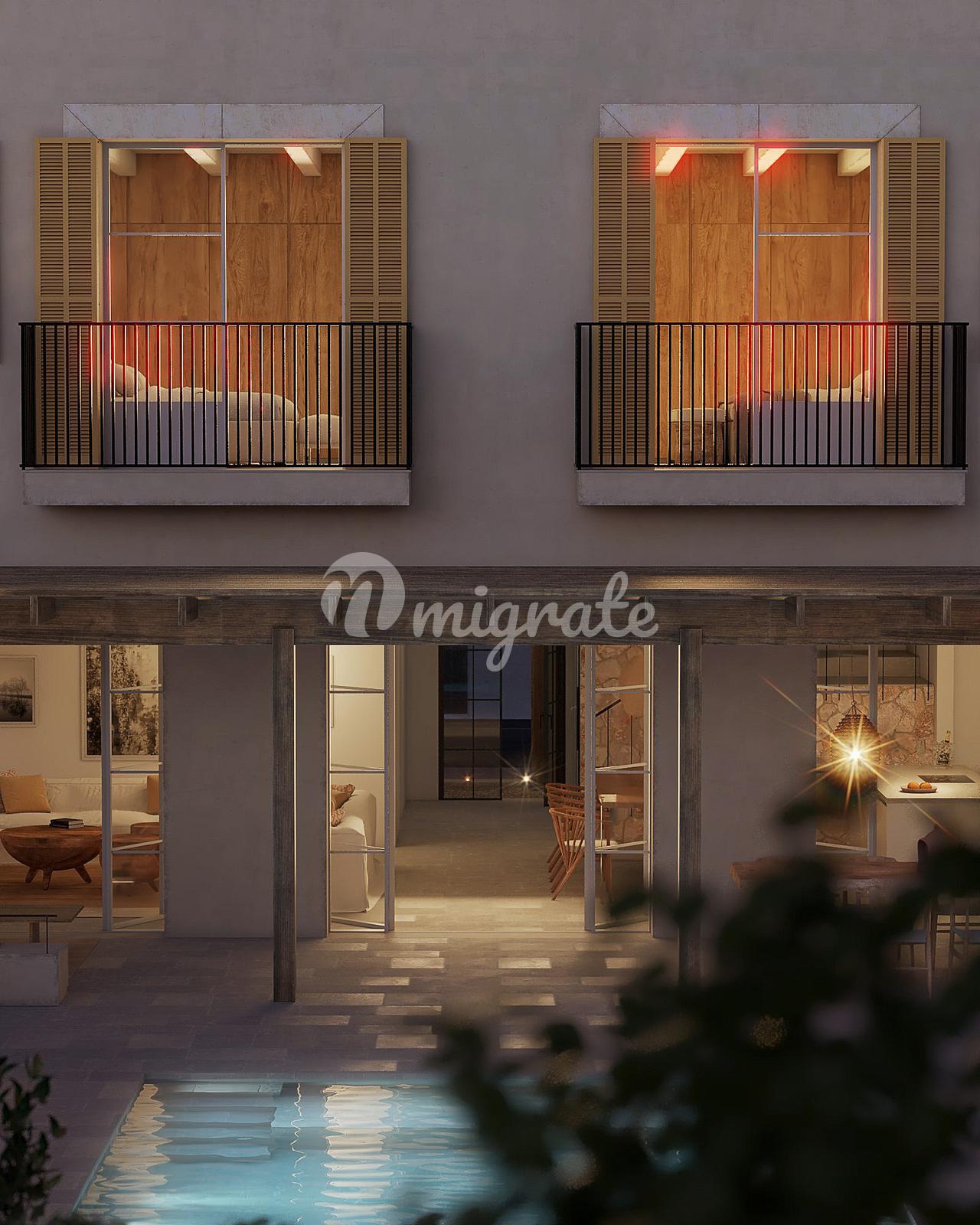 Второй этаж: четыре спальни, все с ванными комнатами, две из них с видом на сад и бассейн с балконами, несколько больше, а две другие с видом на улицу, несколько меньше. Расположение очень широкий и тихий переулок. Всего за 5 минут ходьбы вы можете добраться до церкви, городской площади Сес-Салинес, магазинов, баров и ресторанов.