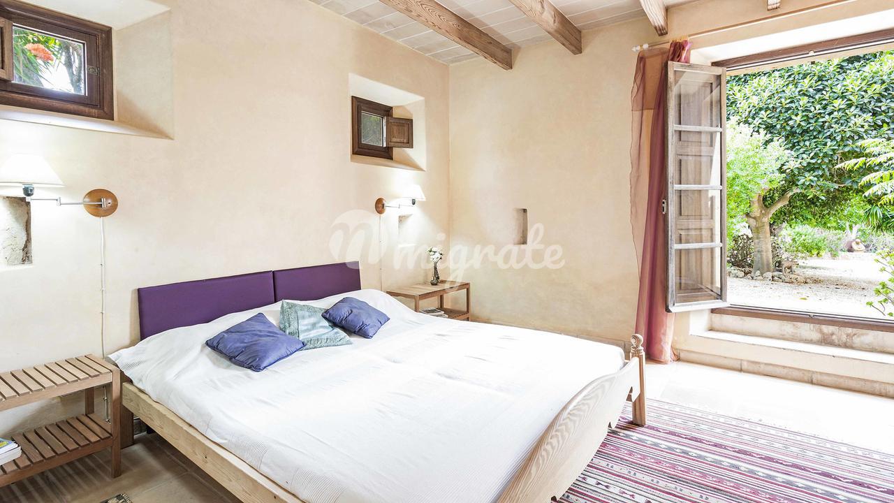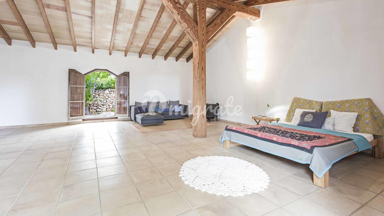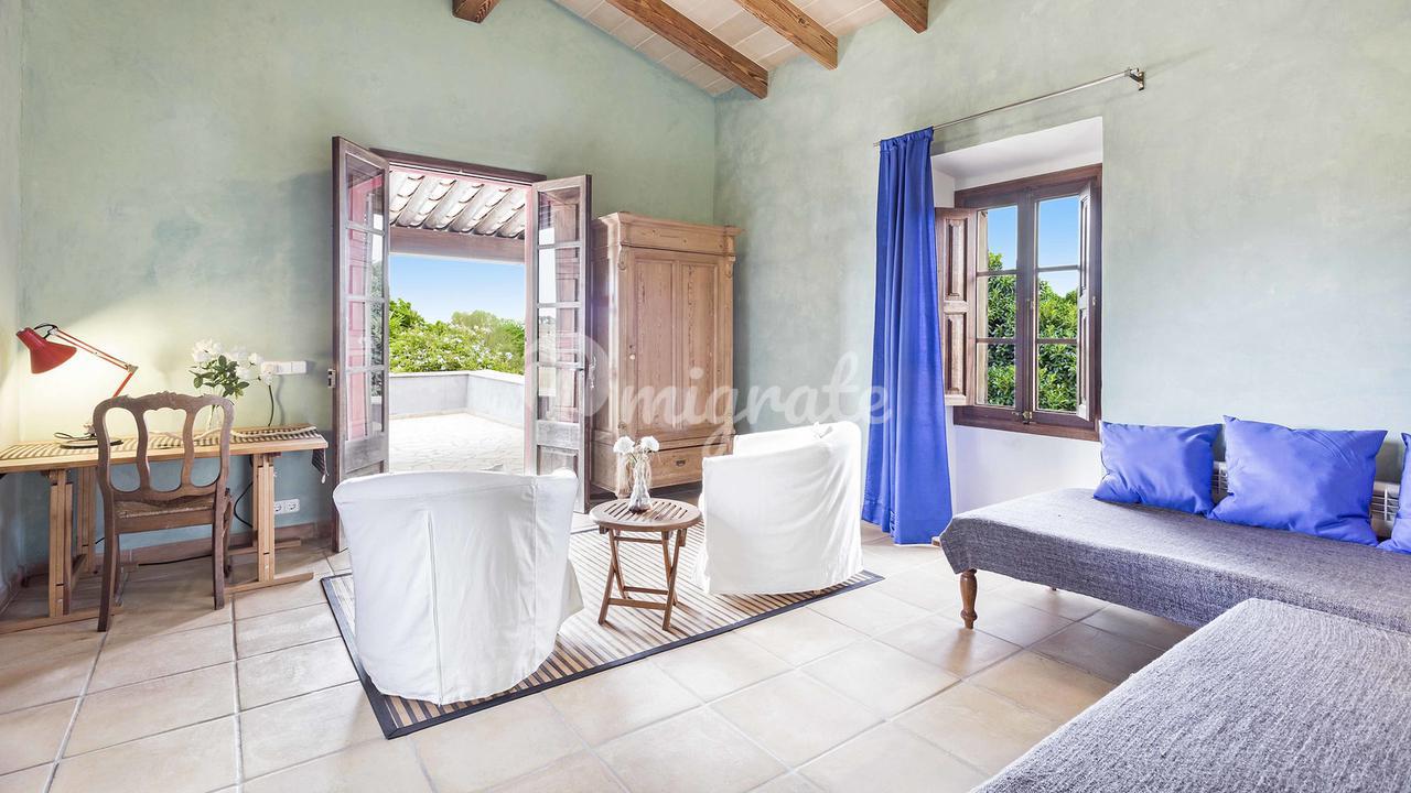 Правое крыло здания содержит очень большую главную спальню с гардеробной и ванной комнатой, еще одну ванную комнату и еще одну спальню с выходом на террасу на крыше, с которой вы можете насладиться захватывающим видом на небольшой город Сантаньи в сторону моря и остров Кабрера.