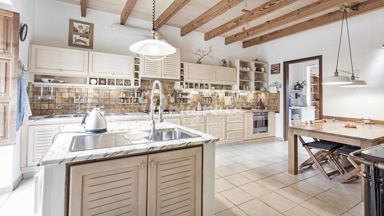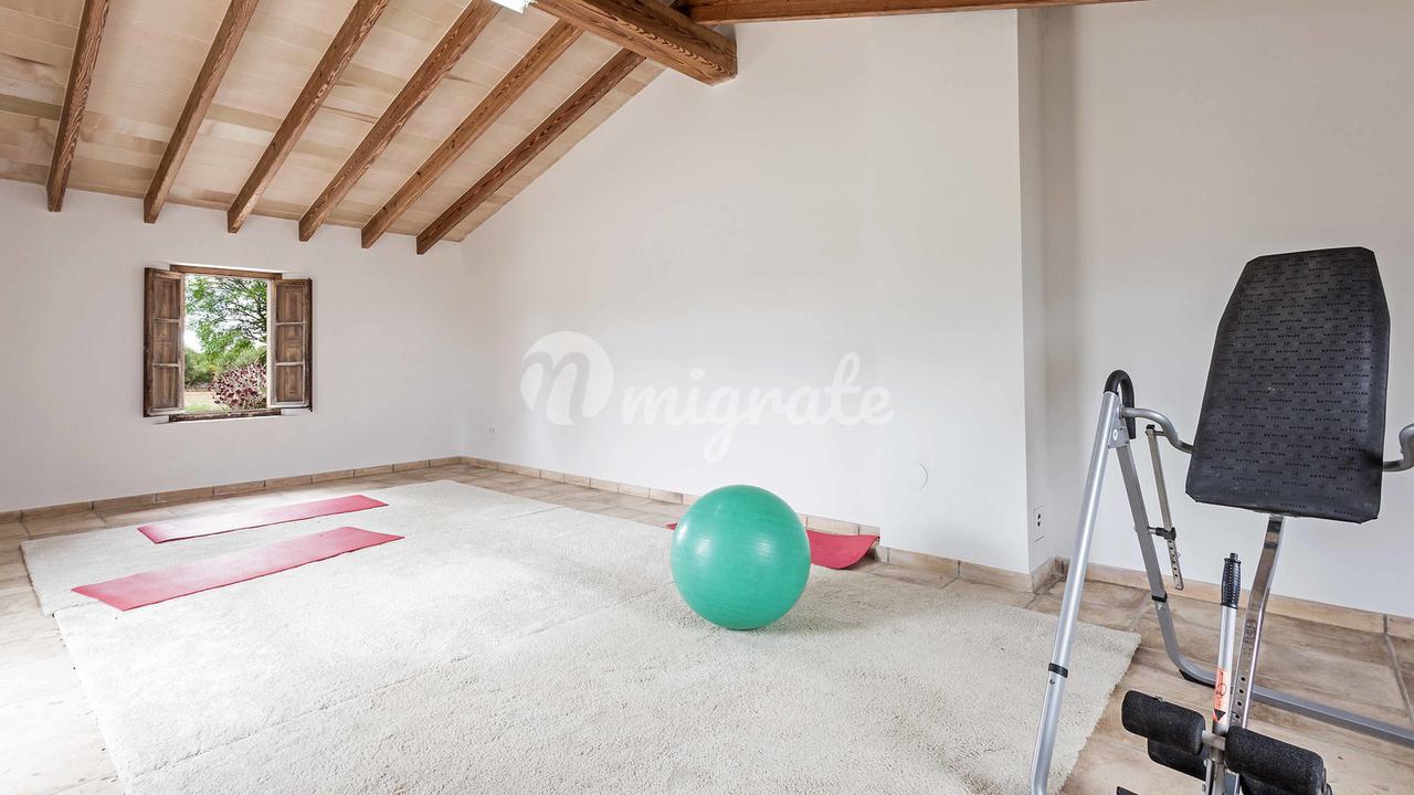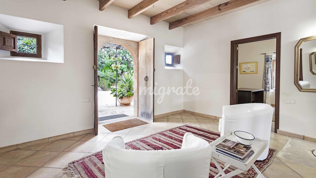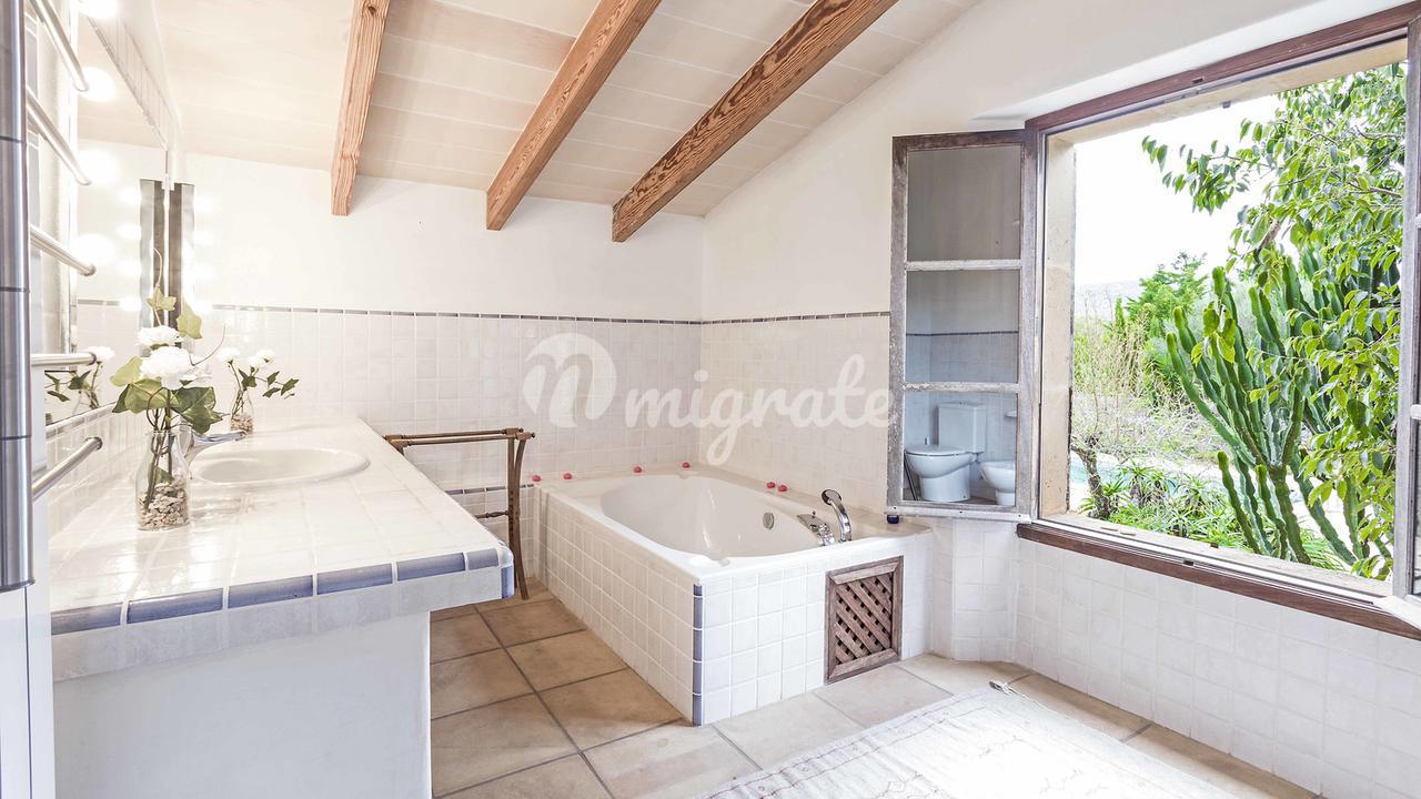 Правое крыло здания содержит очень большую главную спальню с гардеробной и ванной комнатой, еще одну ванную комнату и еще одну спальню с выходом на террасу на крыше, с которой вы можете насладиться захватывающим видом на небольшой город Сантаньи в сторону моря и остров Кабрера.