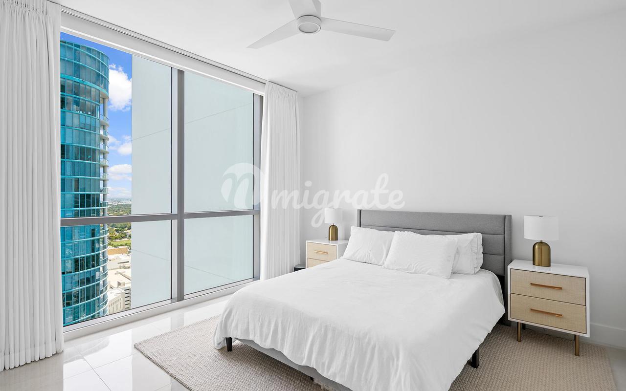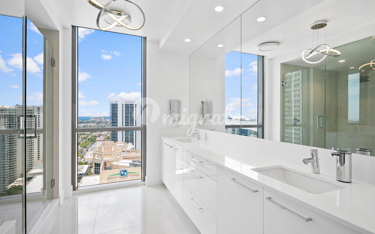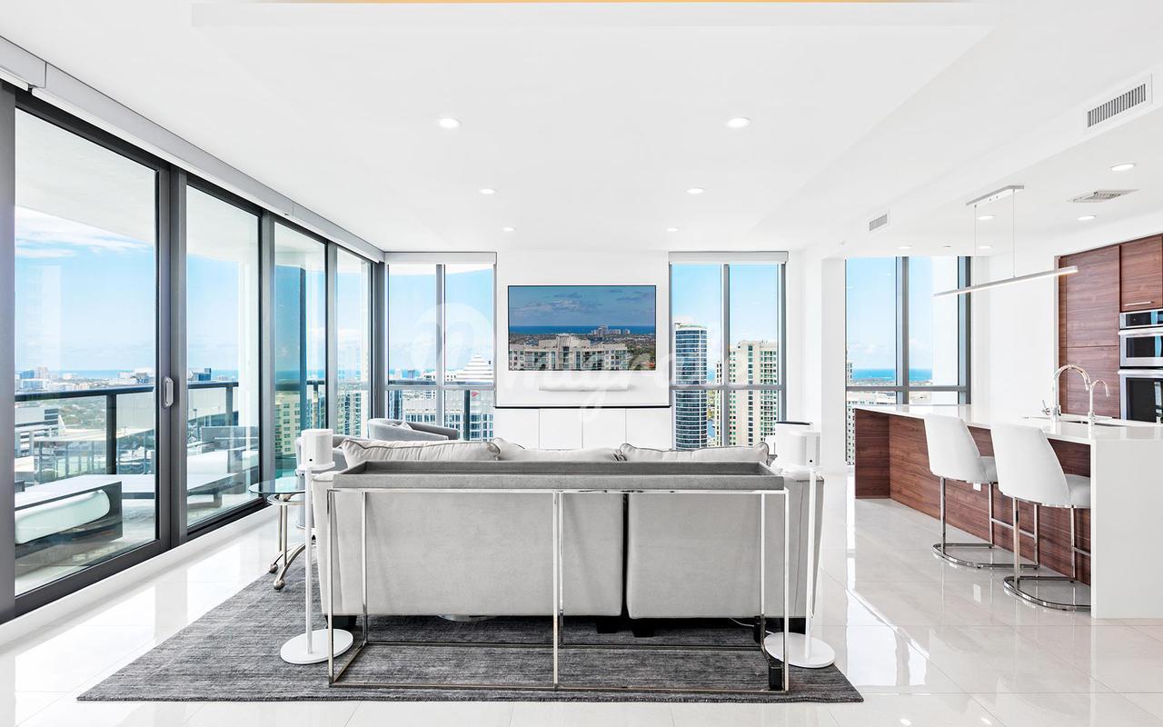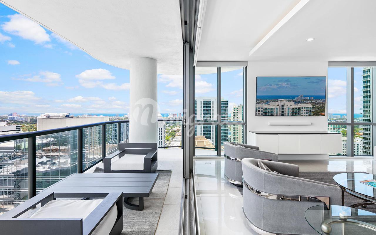 Потрясающая квартира на одном из самых высоких доступных этажей в самом новом, самом роскошном и самом высоком здании в Лас-Оласе - 46 уровней, 113 роскошных резиденций, культовая архитектура - потрясающие виды на город и океан с 35-го этажа, 3 кровати и 2,5 ванные комнаты SMART HOUSE со множеством обновлений, современной кухней с европейской мебелью Nolte и столешницами из кварца, европейской техникой Jenn-Air из нержавеющей стали с винным холодильником, светильниками Grohe & Koehler, окнами от пола до потолка в жилых помещениях. Слайдеры Panorama штабелируются с большой стеклянной террасой. Продается полностью меблированным с 2 СМЕЖНЫМИ ПАРКОВОЧНЫМИ МЕСТАМИ + кладовая! Невероятные удобства, включая бассейн курортного типа, фитнес-центр, клубный зал. Фирменный отель Hyatt на нижних этажах предлагает ресторан, бар и номера, а также прогулку до всех лучших достопримечательностей Лас-Оласа в оживленном центре Форт-Лодердейла.