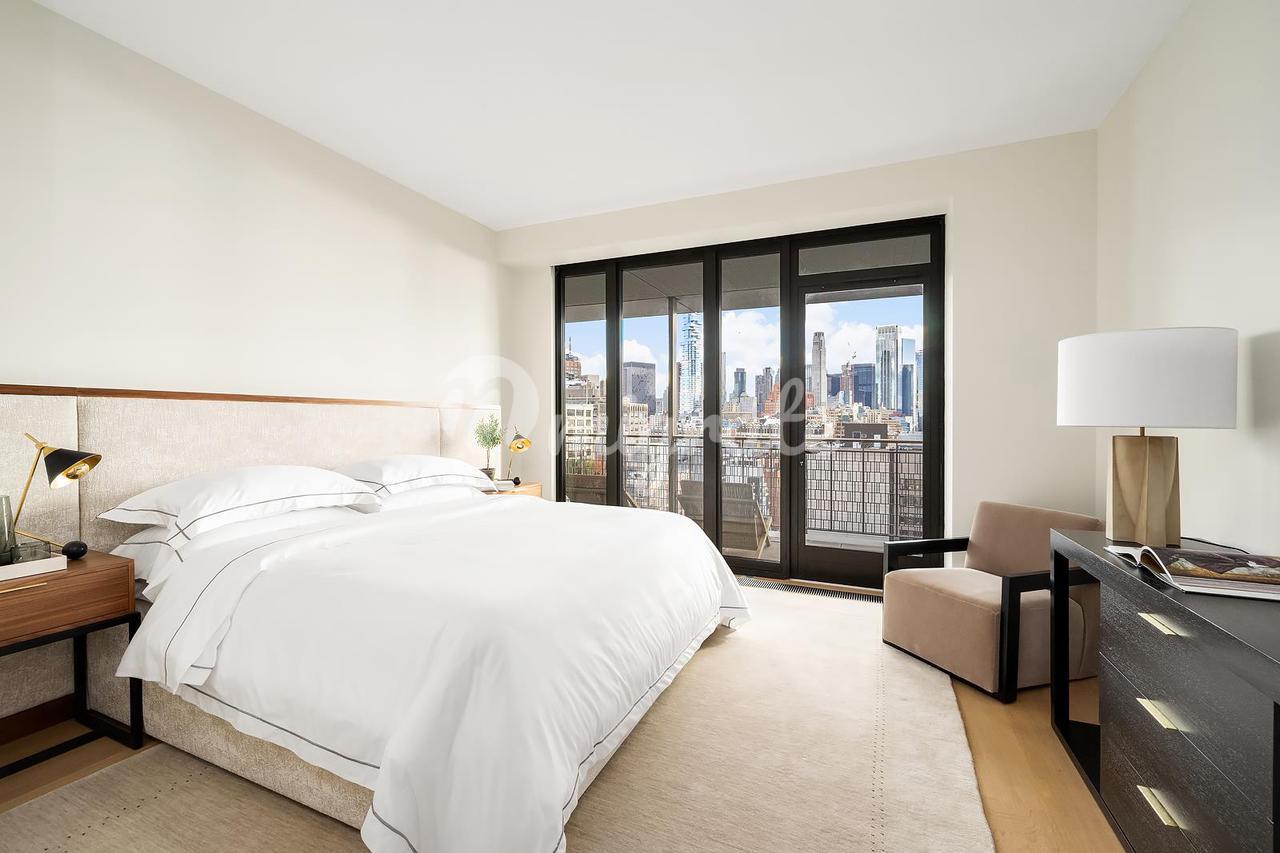 25-этажный 100 Vandam, разработанный новаторской студией COOKFOX Architects, представляет собой редкое вертикальное зрелище на исторической площади Гудзон-сквер. Он легко сочетает в себе старое и новое благодаря отчетливому сохранившемуся основанию фасада из красного кирпича и возвышающейся современной башне из бетона и стекла.