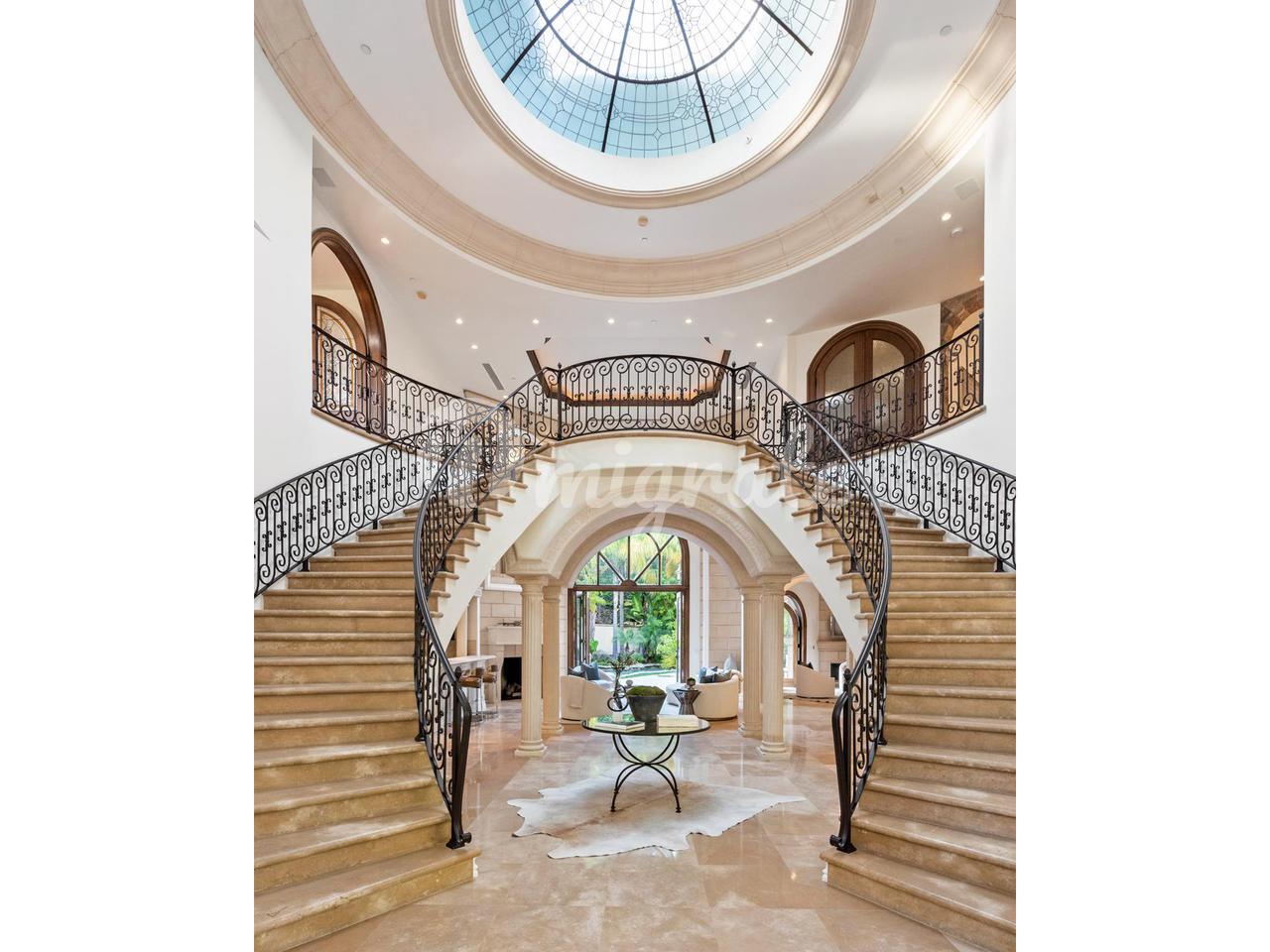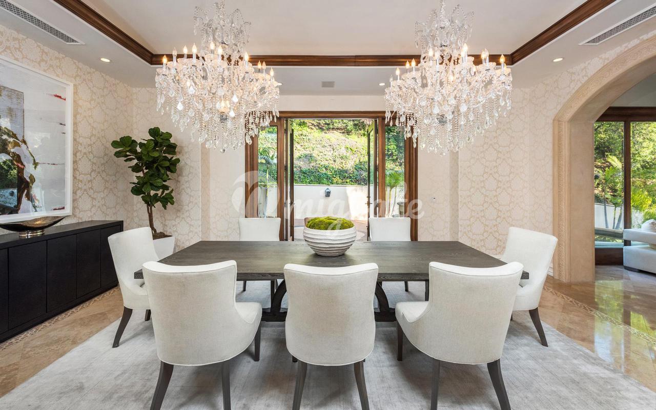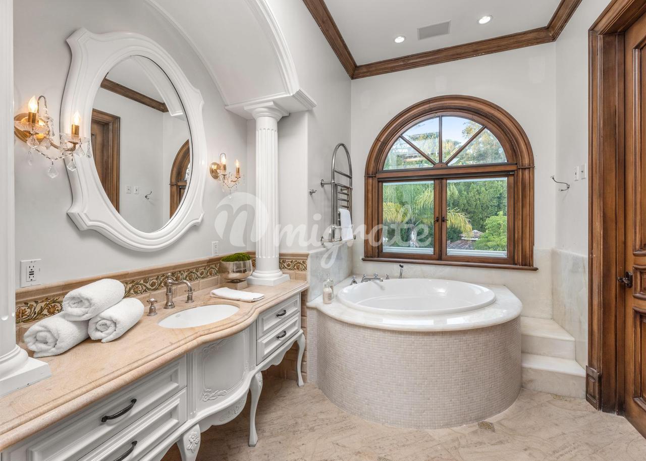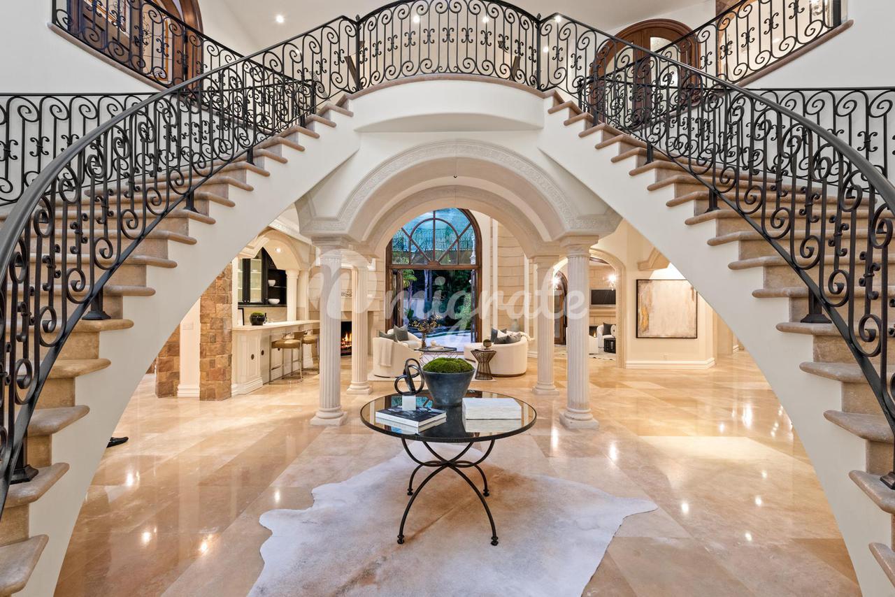 За двойными стальными воротами, которые открываются на длинную, усаженную деревьями подъездную дорожку, обеспечивающую максимальную конфиденциальность, 1181 Laurel Way расположен на акре земли в Беверли-Хиллз. Средиземноморское поместье может похвастаться непревзойденным величием и масштабом площадью 9 370 квадратных футов. Через изготовленную на заказ входную дверь из кованого железа двухэтажное драматическое большое фойе, залитое обилием естественного света, демонстрирует безупречную двойную лестницу и многоуровневое купольное окно в крыше. Это поместье со сложными деталями включает в себя 7 спален, 8 ванных комнат, несколько красивых жилых помещений, формальную столовую, полы из известняка и твердых пород дерева, освещение в нише, кессонные потолки, лепные украшения и нестандартную мебель. Кухня шеф-повара для гурманов включает в себя первоклассную технику, двойные духовки, огромный центральный остров и просторную зону для завтрака. Войдите в роскошный основной люкс через двойные двери, ведущие в роскошную гостиную с барной стойкой, двусторонним камином, двумя ванными комнатами с гардеробными и собственным балконом. На заднем дворе, окруженном пышной зрелой зеленью, расположены кухня и бар на открытом воздухе, крытая лоджия с камином и курортный бассейн с соленой водой, водопадами, водной горкой и спа-центром. Предлагая непревзойденное удобство, дом включает в себя офис, медиа-зал, тренажерный зал, бар с раковиной и помещения для обслуживания.