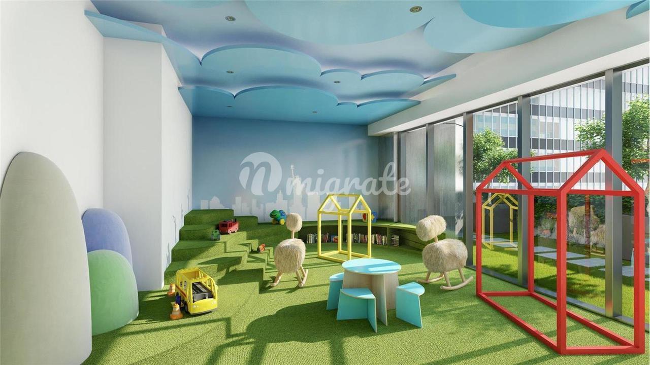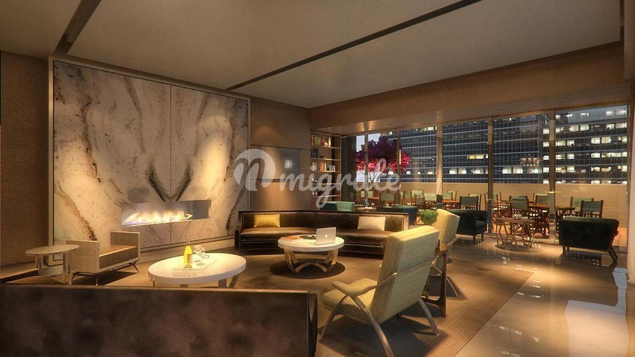 Жильцы пользуются 12 000 SF удобств, включая круглосуточного швейцара и консьержа, 75-футовый плавательный бассейн, современный фитнес-центр, раздевалки, паровую баню и сауну, массажный кабинет, симулятор гольфа, медиа-лаунж, детскую игровую комнату и велосипед. место хранения.