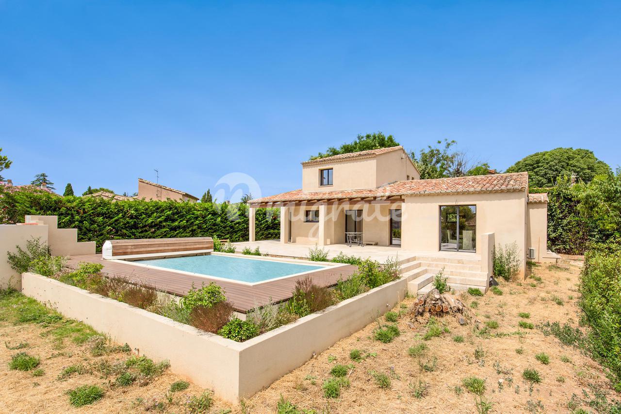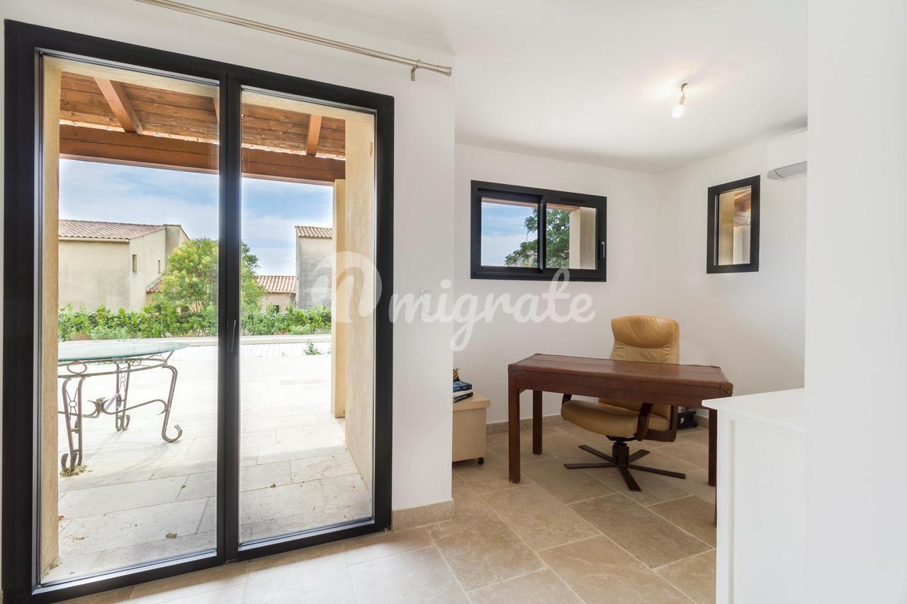 Независимый и ориентированный на юг дом, полностью отремонтированный, состоит на первом этаже из светлой гостиной-столовой с оборудованной кухней. Есть также кабинет, главная спальня с гардеробной и ванная комната. На первом этаже 2 спальни с кладовой и ванная комната. На участке ок. 1000 кв м, есть бассейн 9 х 4,5 м с электрическими ставнями. Прекрасные черты, такие как бордовая каменная плитка, реверсивный кондиционер, электрические ворота. Тихо и близко ко всем удобствам.