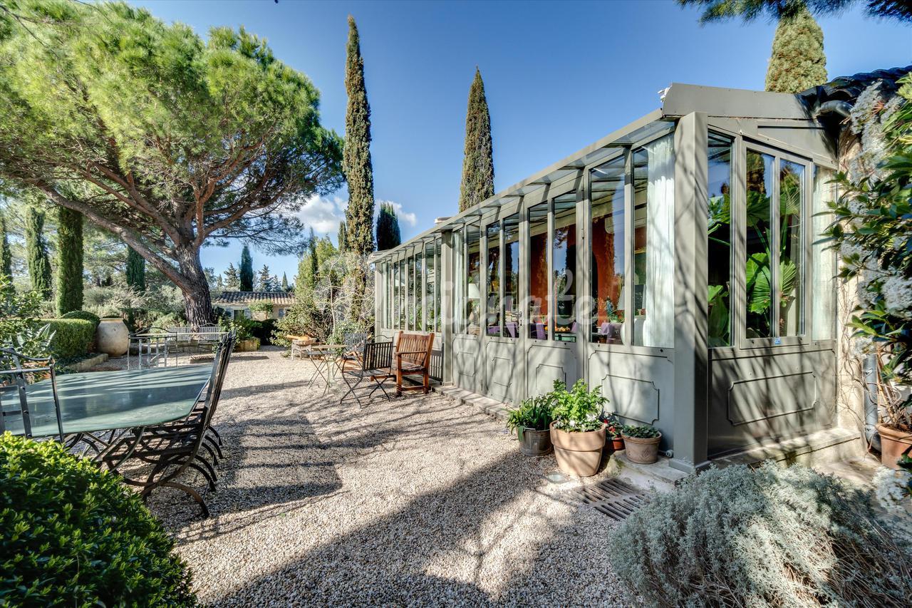 Этот южный дом предлагает превосходные удобства, 4 спальни, 4 ванные комнаты, 2 гостиные с каминами, светлую кухню и просторную и элегантную стеклянную крышу. Сад состоит из бассейна 11 х 5 м, 400 футов оливковых деревьев и кипарисов, дополняющих эту очаровательную обстановку с видом на Мон-Ванту, Альпий и живописную деревню Эйгальер.
