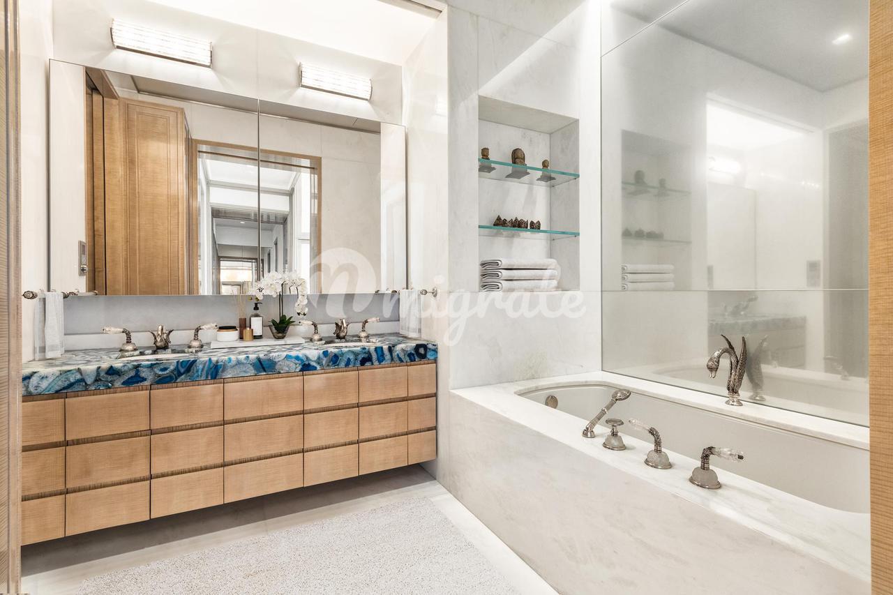 PH41 имеет потрясающую частную террасу. Интерьеры, переосмысленные всемирно известным дизайнером Тони Инграо, украшены нестандартной мозаикой из граненого стекла и экзотическими мраморными украшениями из оникса. Этот PH готов к заселению.