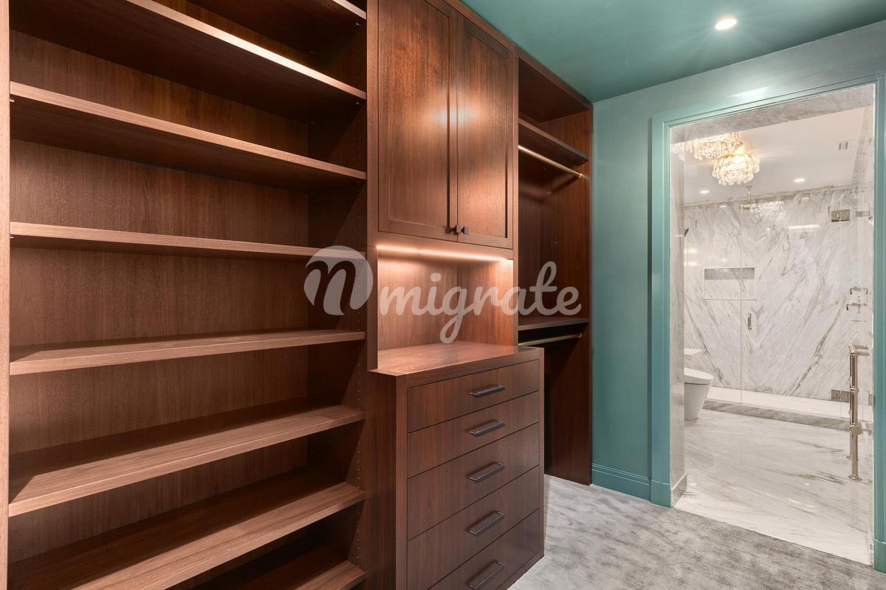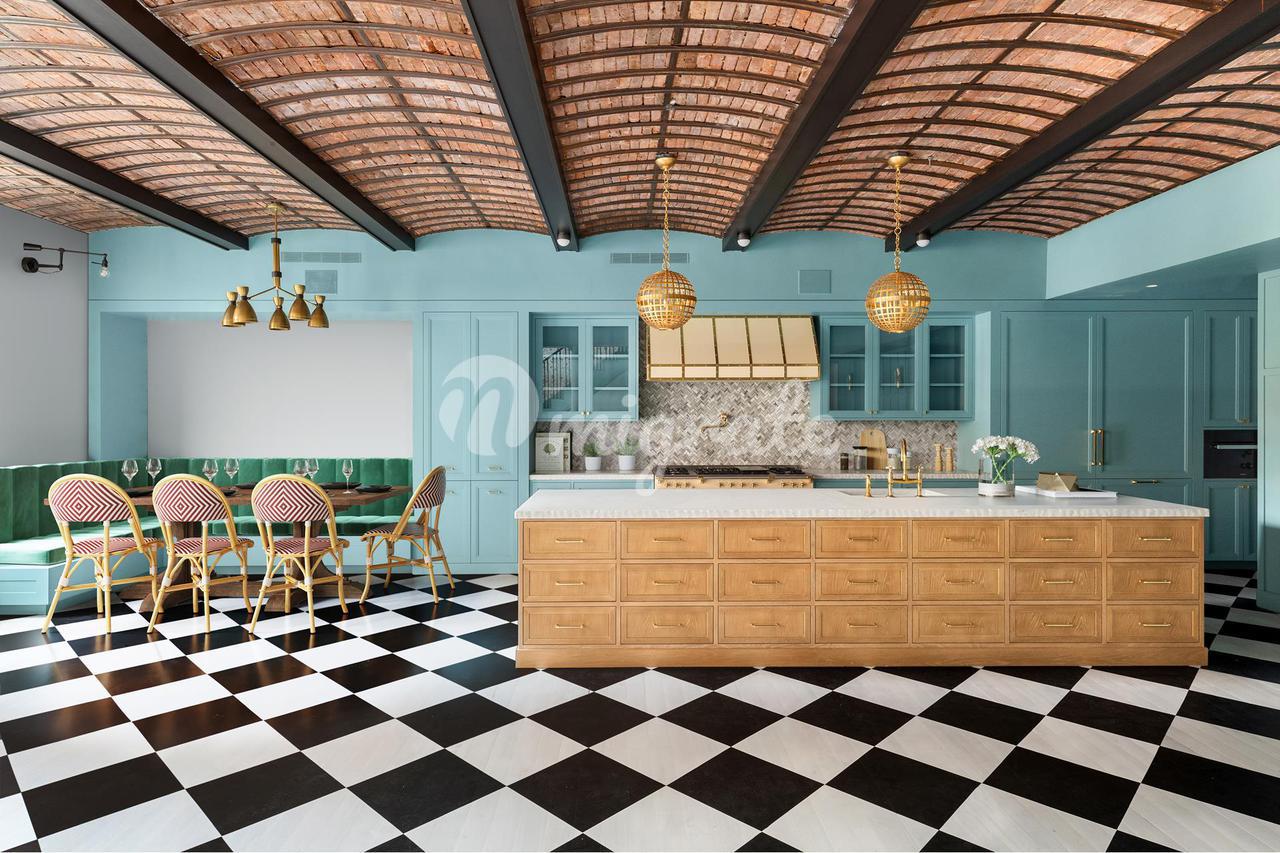 Богатый историческими деталями, такими как оригинальные сводчатые потолки, дом состоит из двух массивных жилых помещений открытой планировки, соединенных элегантной внутренней лестницей. Записи и служебные записи предоставляются на обоих уровнях. Как говорит Фулк, «теплые тона дерева с акцентами из латуни, стекла и мрамора дополняют индустриальную историю района». На нижнем уровне большая комната предлагает неформальную гостиную и кухню-столовую с теплой дубовой столяркой, широкими дощатыми полами и богатыми тканями растительного происхождения. На этом уровне три семейные спальни оформлены в светлых, радостных тонах, каждая с отдельной ванной и вместительной гардеробной. В распоряжении гостей дополнительная полноценная ванна, а также прачечная. Верхний этаж более урбанистический, или «городской», как описывает его Фулк, с полами с узором «шеврон» и деталями в стиле ар-деко с панелями из лакированного дерева темно-зеленого цвета с акцентами из латуни и стекла. Это более формальный уровень, с местом для формальной гостиной и обеденной зоны, со встроенным буфетом, отделанным мрамором. Рядом со второй закрытой кухней имеется барная стойка, предназначенная для удобства приема гостей. Также для удобства предусмотрена туалетная комната. За лестницей находится главная спальня с роскошной гардеробной и большой ванной. Прилегающая спальня с собственной гардеробной и ванной также может быть использована как отдельная гостиная или кабинет.