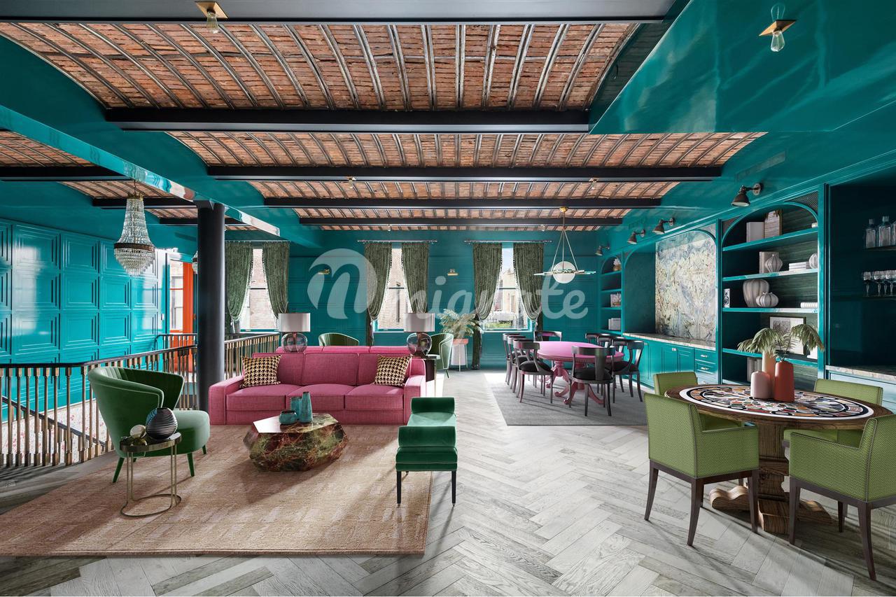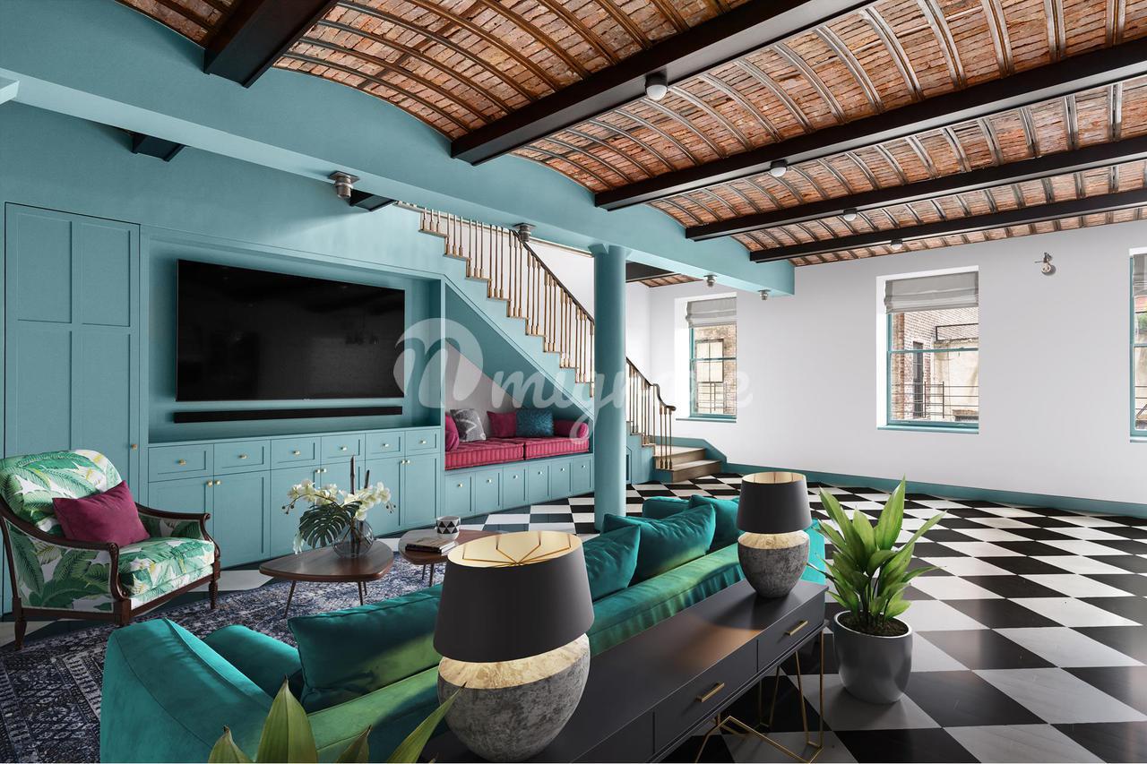 Эта роскошная городская резиденция в довоенном здании в стиле боз-арт в очень особенной части Сохо была спроектирована всемирно известным дизайнером интерьеров Кеном Фулком, членом Architectural Digest 100. Фулк описывает ее как «частично городской особняк и частично загородный особняк», впечатляющий дуплекс площадью 6014 квадратных футов предоставляет ультра-редкую возможность владеть такой просторной квартирой в эпицентре Сохо.