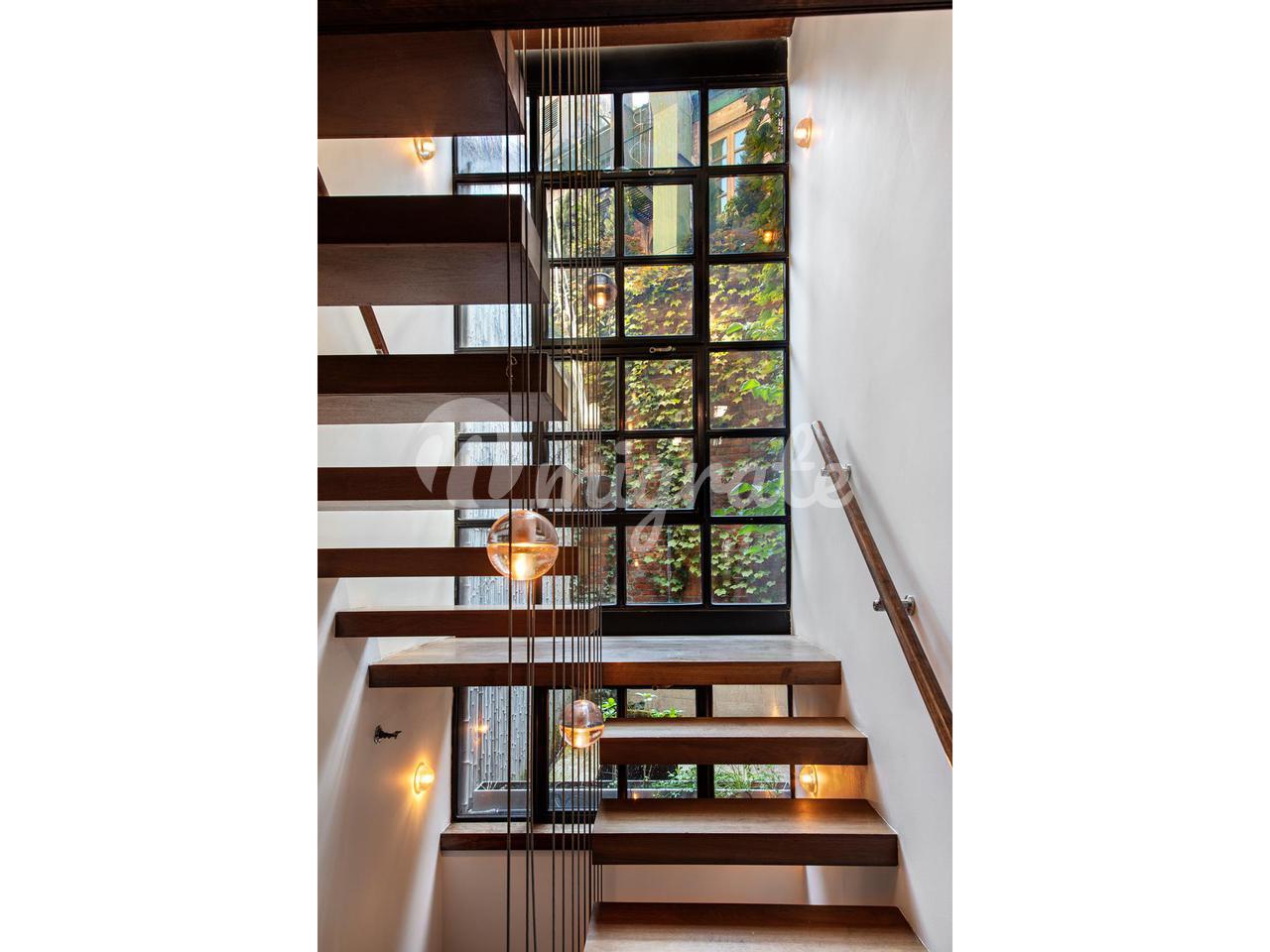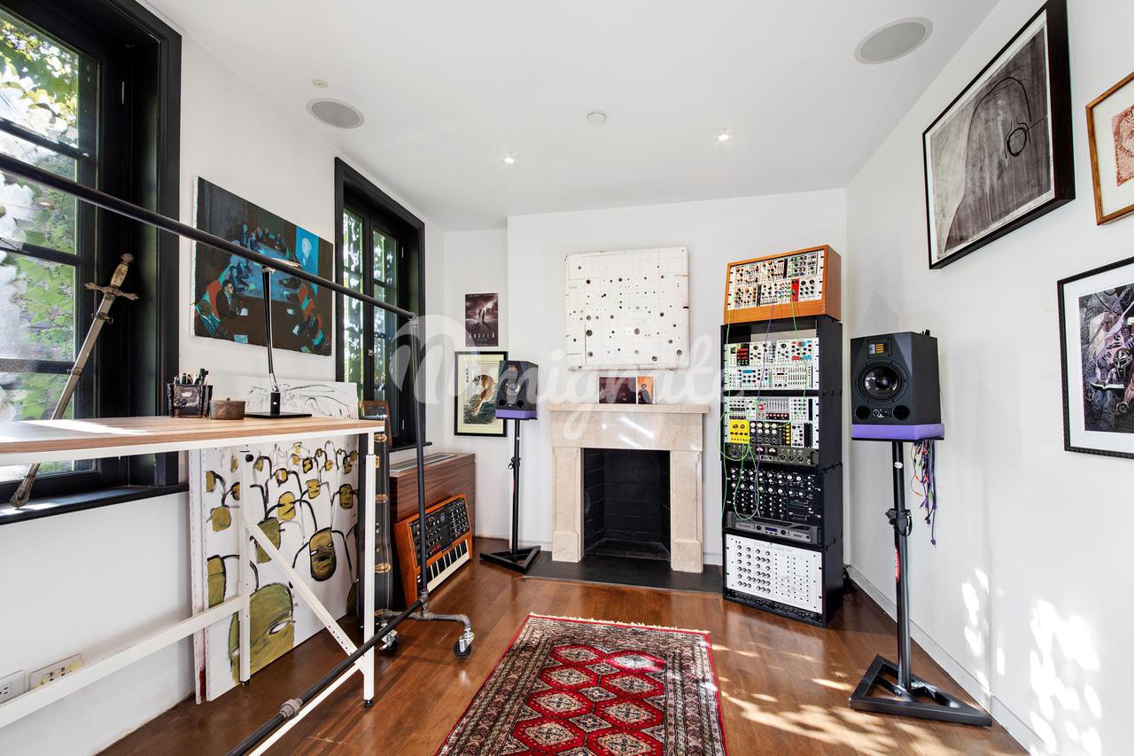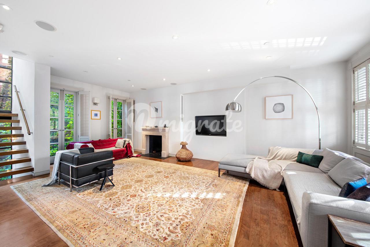 Этот привлекательный дом шириной 18,75 футов в стиле греческого возрождения в Гринвич-Виллидж расположен на тихой усаженной деревьями улице напротив Гринвич-лейн. Построенный в 1836 году, он прекрасно сохранился, продуманно спроектирован и был тщательно отремонтирован. Этот веселый и гостеприимный дом с особыми архитектурными деталями, украшающими фасад, может похвастаться красивыми железными воротами и перилами на крыльце, стеклянным и медным навесом и медным карнизом. . Интерьер, напротив, выглядит современно и предлагает все современные удобства, включая эффективную систему Crestron. Есть три дровяных камина и дополнительный декоративный, украшенный мраморными накладками. Уникальный по внешнему виду и романтичный по ощущению, этот дом залит солнечным светом, сияющим через южную стену с железными створчатыми окнами, которые проходят вертикально сверху донизу дома. Наконец, дзен-сад с отражающим бассейном предлагает безмятежный и мирный спасаться бегством.