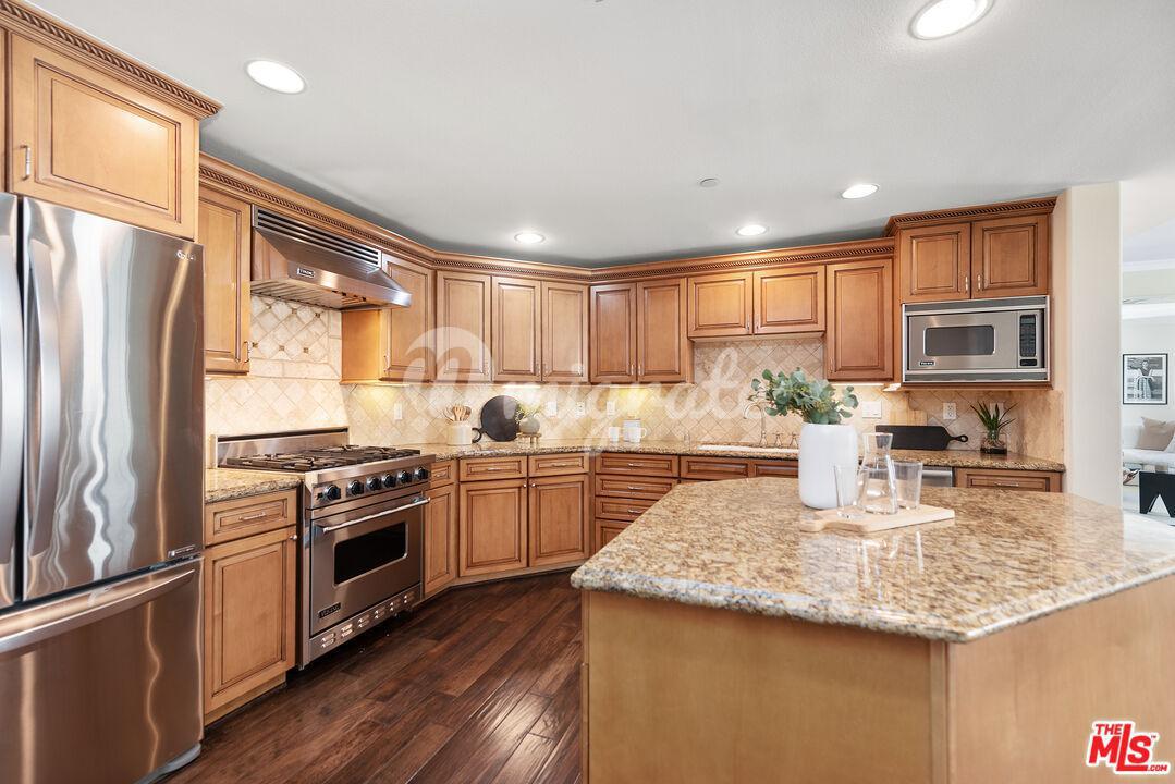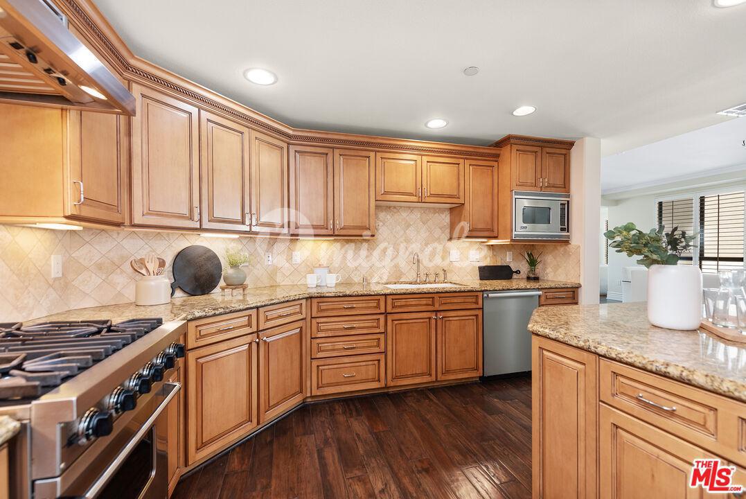 Построенное в 2005 году, это 20-квартирное здание является одним из лучших зданий в Вествуде, а эта этажность - самая большая из пяти на этаже. Это элегантная квартира с видом на улицу и внутренним пространством площадью 2310 квадратных футов. Этот угловой апартамент имеет открытую планировку на одном уровне с красивыми деревянными полами и высокими потолками с лепниной в виде короны. Современная планировка с двумя спальнями и двумя ванными комнатами отличается большими окнами, обеспечивающими максимальное освещение гостиной и столовой с газовым камином. Открытая кухня шеф-повара отделана гранитными столешницами, обильной мебелью и оборудована бытовой техникой Viking. В светлой гостиной есть место для работы или отдыха, а из окон открывается вид на деревья Джакаранда, которые весной и летом расцветают пурпурными цветами. Просторный основной люкс включает в себя большую гардеробную, встроенные шкафы на заказ и ванную комнату с двойным туалетным столиком, душевой кабиной и римской ванной для купания. Наслаждайтесь калифорнийским солнцем со своего собственного балкона рядом с гостиной, с которого открывается вид на обсаженную деревьями улицу с "менее оживленным движением", где есть место для отдыха на свежем воздухе и гриль-барбекю. The Courtyard on Camden - это изысканное здание с входом во внутренний двор с фонтаном, пышной зеленью, лифтом и охраняемым подземным гаражом с двумя выделенными местами для квартиры. Обширная система видеонаблюдения с отдельными кодами доступа для парадного входа и лифта. В нескольких минутах от местных магазинов, ресторанов, Калифорнийского университета в Лос-Анджелесе и Вествуд-Виллидж.
