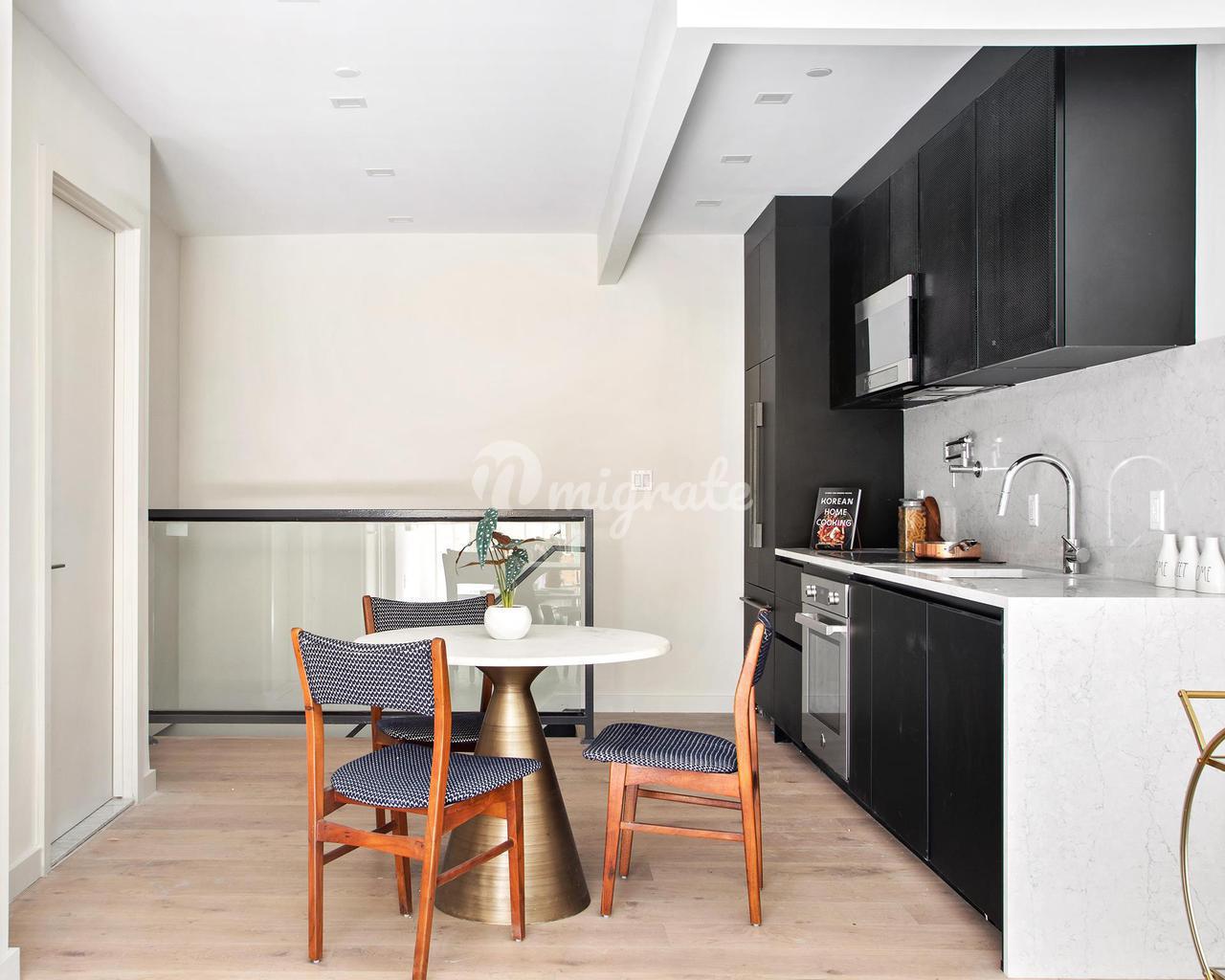 Достойная обморока отделка резиденции включает великолепный 8-дюймовый пол из белого дуба и прекрасную керамогранитную плитку. Изготовленные на заказ дверцы шкафов от Nobilia делают кухню стильной, а комплект встроенной бытовой техники прекрасно дополняет уникальный и стильный дизайн. Проверенные бренды, такие как Fisher & Paykal, Bertazzoni и GE, делают это блюдо мечтой домашнего шеф-повара. Столешницы из кварца Silestone и высококачественная сантехника Grohe дополняют эстетику. Для максимального удобства в комплект поставки входит стиральная машина / сушилка, а также скрытые электрические сплит-системы Gree для обеспечения максимального комфорта круглый год. Высококачественные окна во всю высоту от Pella дополняют современный дизайн. Ванные комнаты одинаково просторны и стильны и отделаны испанской керамогранитной плиткой Toscana Blanco, что создает ощущение спа-оазиса. Дизайн также включает в себя светильники Grohe и дуэт ванна / туалет от Fine Fixtures. Большие туалетные столики обеспечивают достаточно места для хранения вещей.