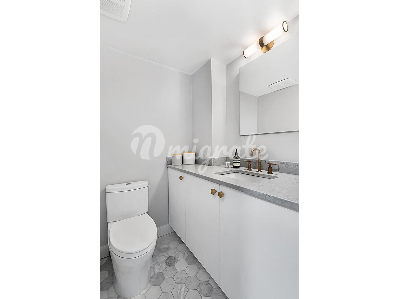 В этом полноэтажном залитом солнцем пентхаусе есть 13 окон с автоматическими шторами, массивный световой люк, дровяной камин и просторная частная крыша. Совершенно новая кухня, только что завершившая капитальный ремонт, оснащена столешницами из каррарского мрамора, сделанными на заказ шкафами и бытовой техникой из нержавеющей стали. Готовить для своей команды — одно удовольствие, глядя на верхушки деревьев на 11-й Западной улице через одно из двух кухонных окон.