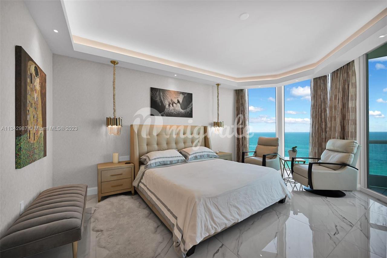 Единственная в своем роде красивая сквозная квартира с прямым видом на океан и побережье, 3 кровати + кабинет (легко преобразуется в 4-ю спальню) + комната для прислуги, 4,5 ванные комнаты 3500 кв. футов, потолки 10 футов. Эта великолепная резиденция была реконструирована и обработана с учетом мельчайших деталей, профессионально спроектирована и украшена самыми высококачественными отделочными материалами. Turnberry Ocean Colony - это закрытое сообщество с престижным сервисом и удобствами курортного стиля, которые включают парковку служащим отеля, 2 бассейна с подогревом, частный спа-центр, пляжные услуги, фитнес-центр, детский клуб, парикмахерскую и 2 ресторана.