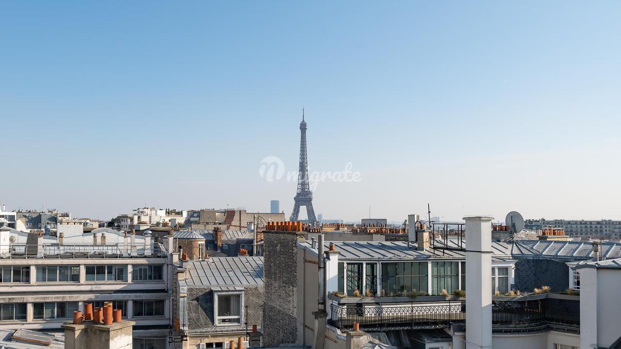 На верхних этажах элитного здания с высокой степенью безопасности, постоянный сторож 24 часа в сутки. Роскошный 7-комнатный двухуровневый пентхаус площадью 211 кв.м с внешней площадью 212 кв.м (3 террасы) с захватывающим видом на весь Париж и исключительным видом на Эйфелеву башню, наслаждаясь исключительным естественным освещением в течение всего дня. Квартира включает в себя входную галерею, очень красивую гостиную площадью 60 кв.м с камином, столовую с выходом на обсаженную деревьями террасу и полностью оборудованную кухню. На ночной стороне на восьмом этаже находятся две спальни с ванной комнатой, за которыми следуют два родительских люкса на верхнем этаже, каждый со своей собственной ванной комнатой и террасами на первом этаже. 1 автостоянка, подвал и подсобное помещение. Эксклюзивное расположение недалеко от площади Мехико и Трокадеро.