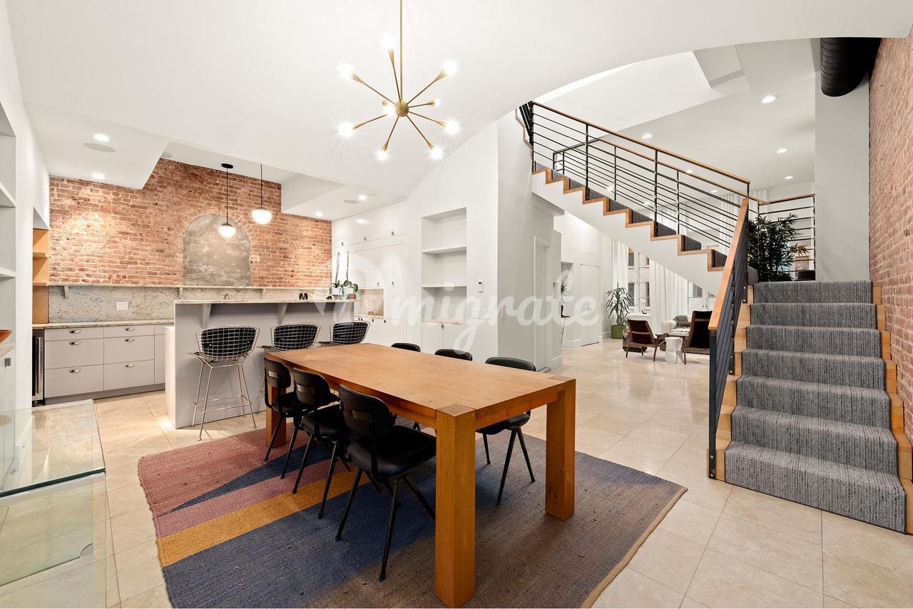 Кондоминиум Tribeca penthouse в отличном состоянии имеет три спальни, три ванные комнаты, дамскую комнату, частную прачечную, центральное кондиционирование и две сказочные частные террасы. Это уникальное свойство сочетает в себе изысканность кондоминиума с очаровательным характером таунхауса. Войдите в свой личный лифт с ключом, который доставит вас прямо в ваш пентхаус, и полюбуйтесь высокими потолками и впечатляющим освещением. Открытая планировка плавно соединяет гостиную и столовую зоны, что делает ее идеальной для приема ваших друзей и семьи.