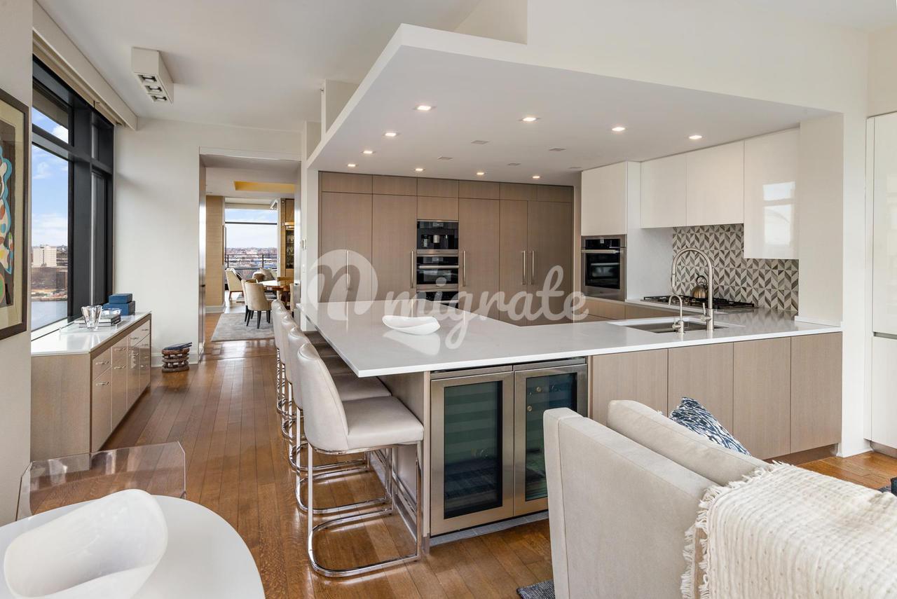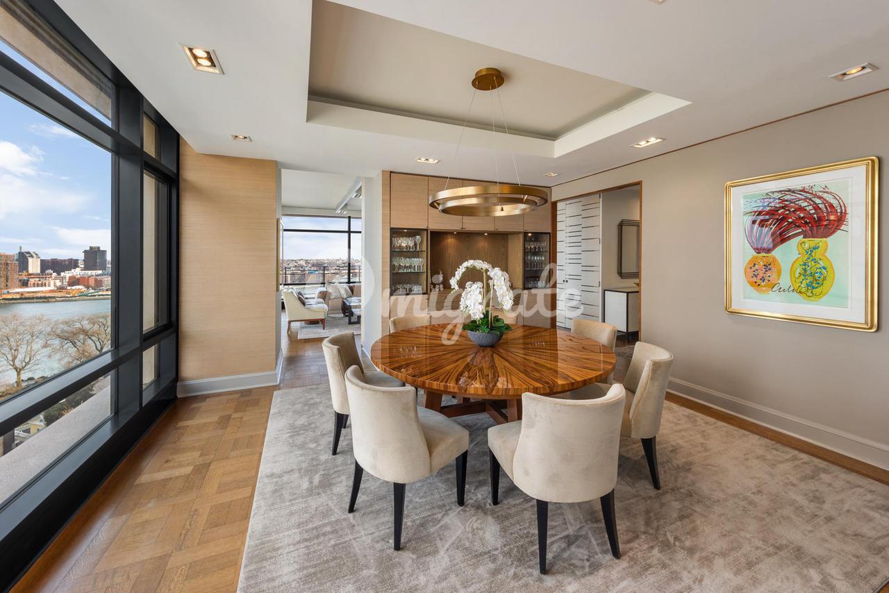 На изысканную реконструкцию резиденции 14C на Ист-Энд-авеню, 170, роскошного кондоминиума, расположенного на пересечении 88-й улицы и Ист-Энд-авеню, не пожалели средств. Блок 14C - это просторный дом площадью 3619 кв. футов с открытой площадью 135 кв. футов, включающий 4/5 спален и 5 с половиной мраморных ванн с захватывающим видом на Ист-Ривер, парк Карла Шурца и открытый вид на город через огромные окна от пола до потолка во всех комнатах квартиры. Отличительные особенности включают 10-футовые потолки, красивые дубовые полы и изготовленную на заказ систему Crestron, которая управляет освещением, моторизованными шторами и аудио-видео системами. Когда вы входите во входную галерею, вас встречает изготовленный на заказ декоративный стеклянный потолочный светильник с цветочным мотивом. В галерее у входа расположены два встроенных шкафа для одежды и обуви. Рядом с входной галереей есть дамская комната. Просторная гостиная включает в себя террасу, выходящую на север и восток, с панорамным видом на реку, парк и особняк Грейси. Газовый камин с дистанционным управлением и барная стойка дополняют пространство гостиной. Огромная кухня Bilotta, оснащенная по последнему слову техники, может похвастаться центральным островом с кварцевыми столешницами и залом для завтраков, которые были недавно отремонтированы с вниманием к каждой детали и никогда не использовались. Кухня этого шеф-повара оснащена всей новейшей бытовой техникой Miele, включая большой холодильник с морозильной камерой, встроенную кофеварку, скоростную духовку, конвекционную печь, плиту с пятью конфорками, посудомоечную машину и винный холодильник. Кухня и зал для завтраков выходят окнами на север и запад, откуда открывается потрясающий вид на город. Кухня переходит в официальную столовую с изготовленными на заказ декоративными столярными изделиями и сервировочным столом. Рядом с гостиной находится библиотека / 5-я спальня с собственной ванной комнатой и видом на реку и парк на восточной стороне. В главной спальне есть огромная, изготовленная на заказ гардеробная, ванная комната с окном, глубокой ванной для купания и душевой кабиной. И спальня, и ванная комната выходят окнами на восток, в парк и реку. Садовая терраса находится рядом со спальней, так что можно выйти на улицу и насладиться видом. В отдельном спальном крыле расположены три спальни, выходящие на западную сторону, каждая со своими ванными комнатами. Из всех трех спален открывается прекрасный вид на город. Дополнительные удобства квартиры включают полноразмерную стиральную машину / сушилку LG, индивидуальное освещение по всей квартире и множество шкафов и мест для хранения вещей. Существует отдельная гостевая квартира с высотой потолков 12 "4", которая была полностью отремонтирована, включая мини-кухню со всей новой техникой Miele, недавно отремонтированную ванную комнату и красивые деревянные полы повсюду. За дверями, обшитыми деревянными панелями, спрятаны полноразмерная морозильная камера Sub-Zero и винный холодильник. Гостевая квартира предлагается на продажу отдельно. Кроме того, есть два очень больших склада, каждый из которых предлагается на продажу отдельно. Площадь одного составляет 100 кв.футов, а другого - 92 кв. фута. Они оба имеют приподнятые полы-платформы и встроенные стеллажи для хранения, чтобы максимально увеличить