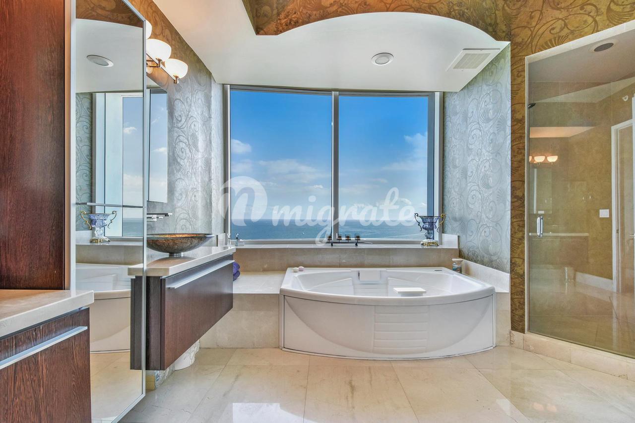 Роскошный дом на берегу океана, единственный в своем роде, с великолепным видом на океан, побережье и город. Это 3 спальни, 3,5 ванные комнаты и небольшой приют. Безупречно ухоженная резиденция с окнами от пола до потолка, просторными террасами и кухней с европейской техникой. Trump Palace предлагает превосходное расположение на берегу океана, полный спектр услуг на пляже и у бассейна, спа-салон, современный фитнес-центр, бассейны, джакузи, занятия по активному отдыху, теннисные корты, ресторанное обслуживание, полный доступ в отель Trump International, услуги парковщика и многое другое.