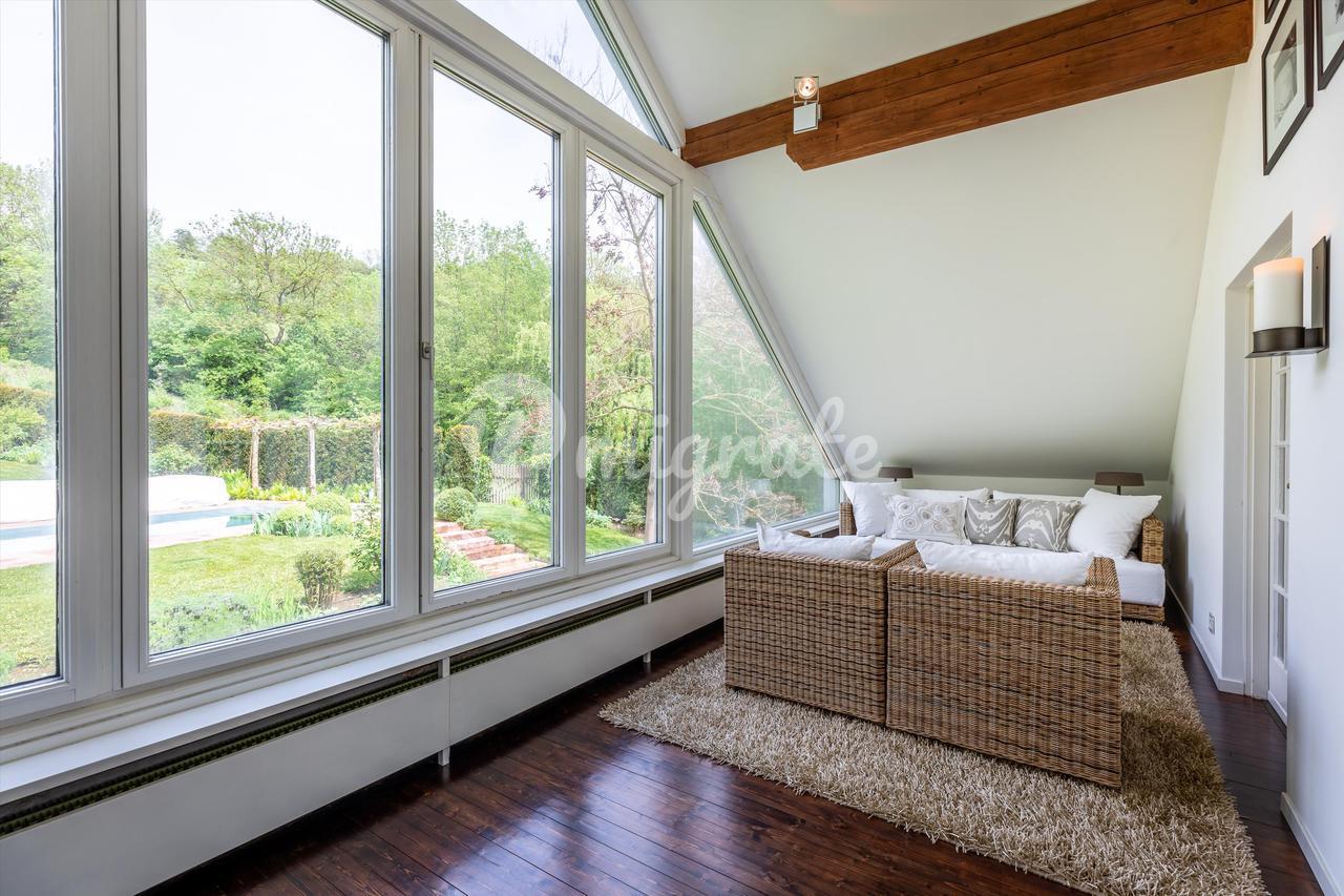 Вилла также располагает собственной паровой баней, роскошным бассейном, ухоженным садом, гаражом на две машины и дополнительными возможностями парковки снаружи.