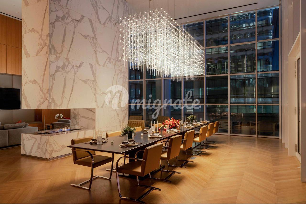 Представляем пентхаус 32, непревзойденную резиденцию на весь этаж с тремя спальнями и тремя с половиной ванными комнатами, 14-метровыми потолками и 148 линейными футами непрерывной террасы с 360-градусным видом на Центральный парк и горизонт Манхэттена. Стеклянные окна от пола до потолка и просторные 14-метровые потолки идеально сочетают концепцию проживания внутри и снаружи.