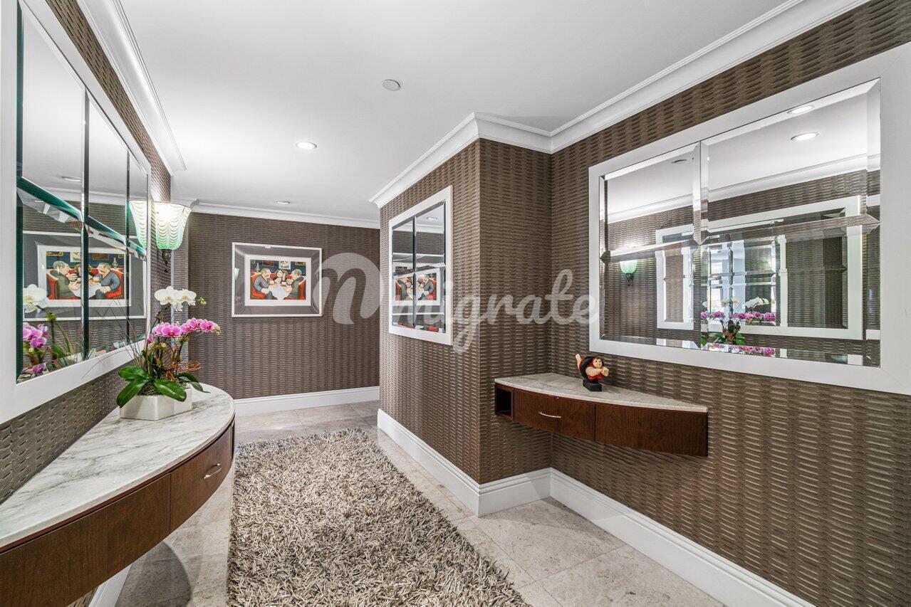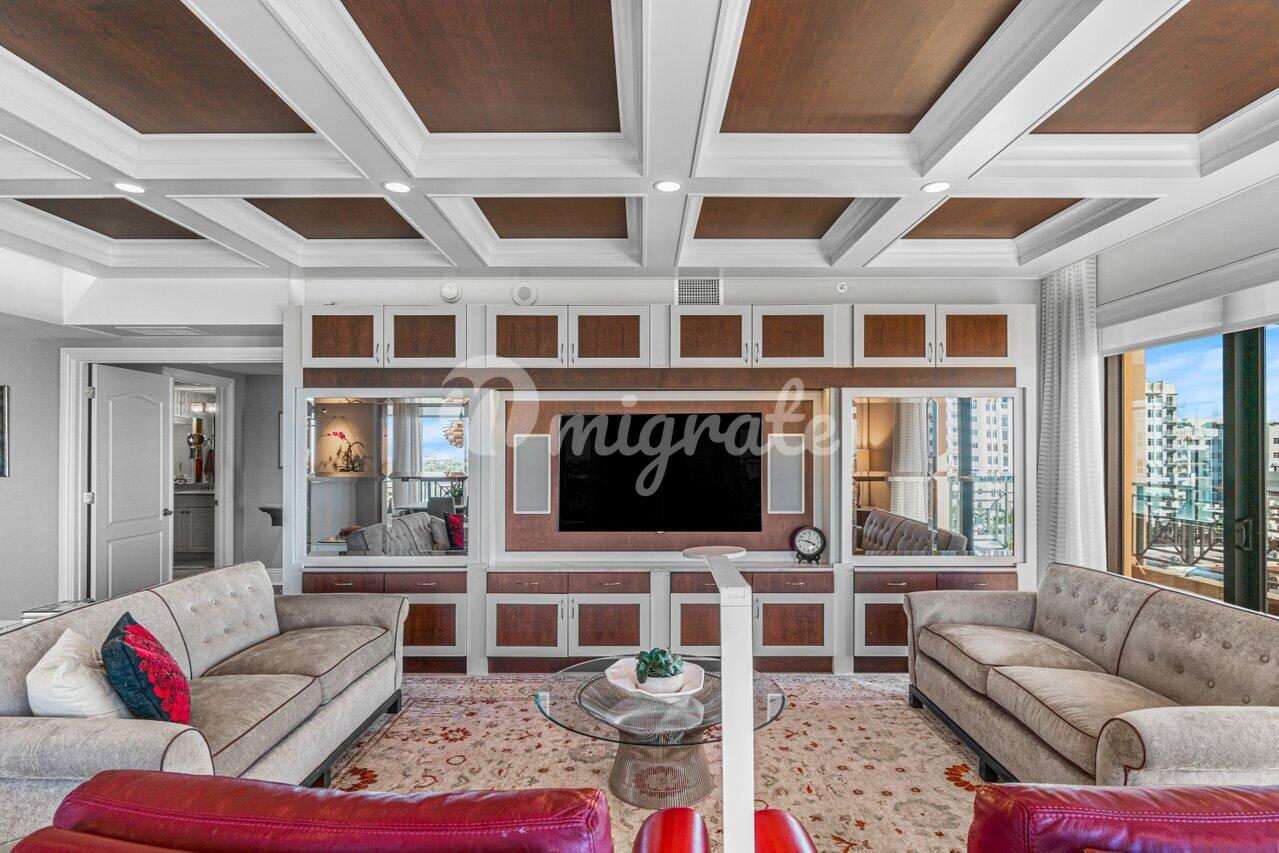 Личная резиденция архитектора, существенно модернизированная и декорированная; может быть предложена с изысканной мебелью и полностью "под ключ". Элегантность ждет вас в этом просторном угловом кондоминиуме с 3 спальнями и 3 1/2 ванными комнатами в самом центре города Бока-Ратон. Когда вы входите через двойные парадные двери и проходите через частное фойе, украшенное шелковыми настенными покрытиями, вас встречает обильное естественное освещение. Панорамные окна от пола до потолка ведут на 3 просторных крытых балкона общей площадью 300 кв. футов. Тщательно отделанный дом отличается кессонными потолками, изготовленной на заказ мебелью и драпировками, полами с твердым покрытием, бытовой техникой Thermador из нержавеющей стали, холодильником с панелями, встроенной кофемашиной Miele и гранитными столешницами.В основном люксе есть две гардеробные и ванная комната с двойным туалетным столиком, джакузи