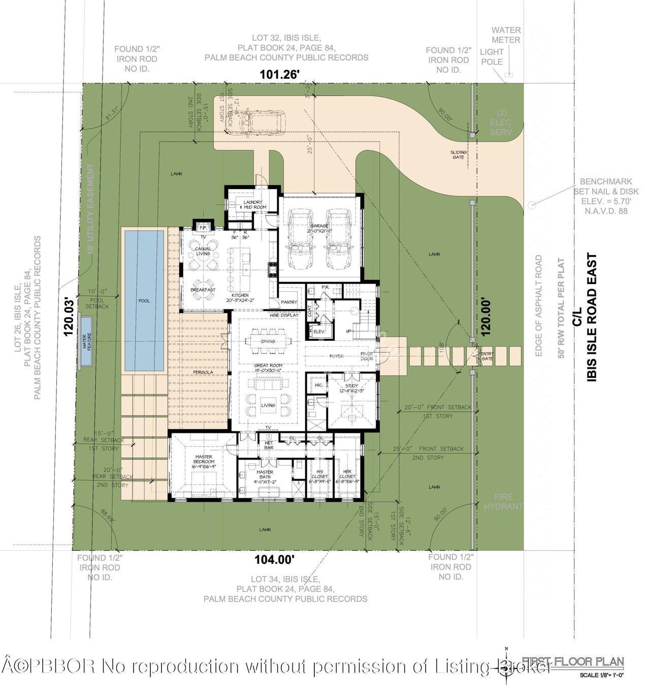 ДОСТУПНА ЗЕМЛЯ С ОДОБРЕННЫМИ ARCOM ПЛАНАМИ ЗА 7 000 000 ДОЛЛАРОВ. Потрясающий новый дом в Палм-Бич! Пять спален, гараж на две машины, бассейн и более 5000 квадратных футов в частном анклаве Ibis Isle. Спроектированный архитекторами Dailey Janssen Architects и W Development Group, этот особняк предлагает отделку высочайшего качества с продуманной планировкой этажей и необычными открытыми пространствами. Ожидаемое завершение строительства летом 2024 года.