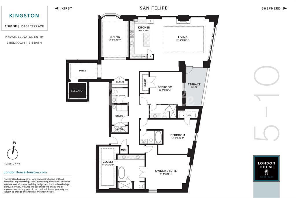 Откройте для себя London House, роскошный бутик-комплекс Рэндалла и Натали Дэвис, расположенный недалеко от престижного загородного клуба River Oaks. Это 12-этажное здание предлагает 23 дома на заказ площадью от 2000 до 4400 кв. футов, вдохновленных традиционной лондонской архитектурой. Планировка KINGSTON на 7-м этаже включает в себя три спальни, 3,5 ванные комнаты и апартаменты владельца с просторной гардеробной. Эта резиденция, идеально подходящая для развлечений, располагает официальной обеденной зоной, частным лифтом и вестибюлем. В отеле London House предоставляются услуги консьержа. В распоряжении гостей мебель от Eggersmann, набор бытовой техники Thermador и бесконтактные функции для улучшения здоровья. Украсьте свой дом широким выбором изысканных камней и фарфора. Культовый по стилю и идеальному расположению, сделайте London House своим новым домом!
