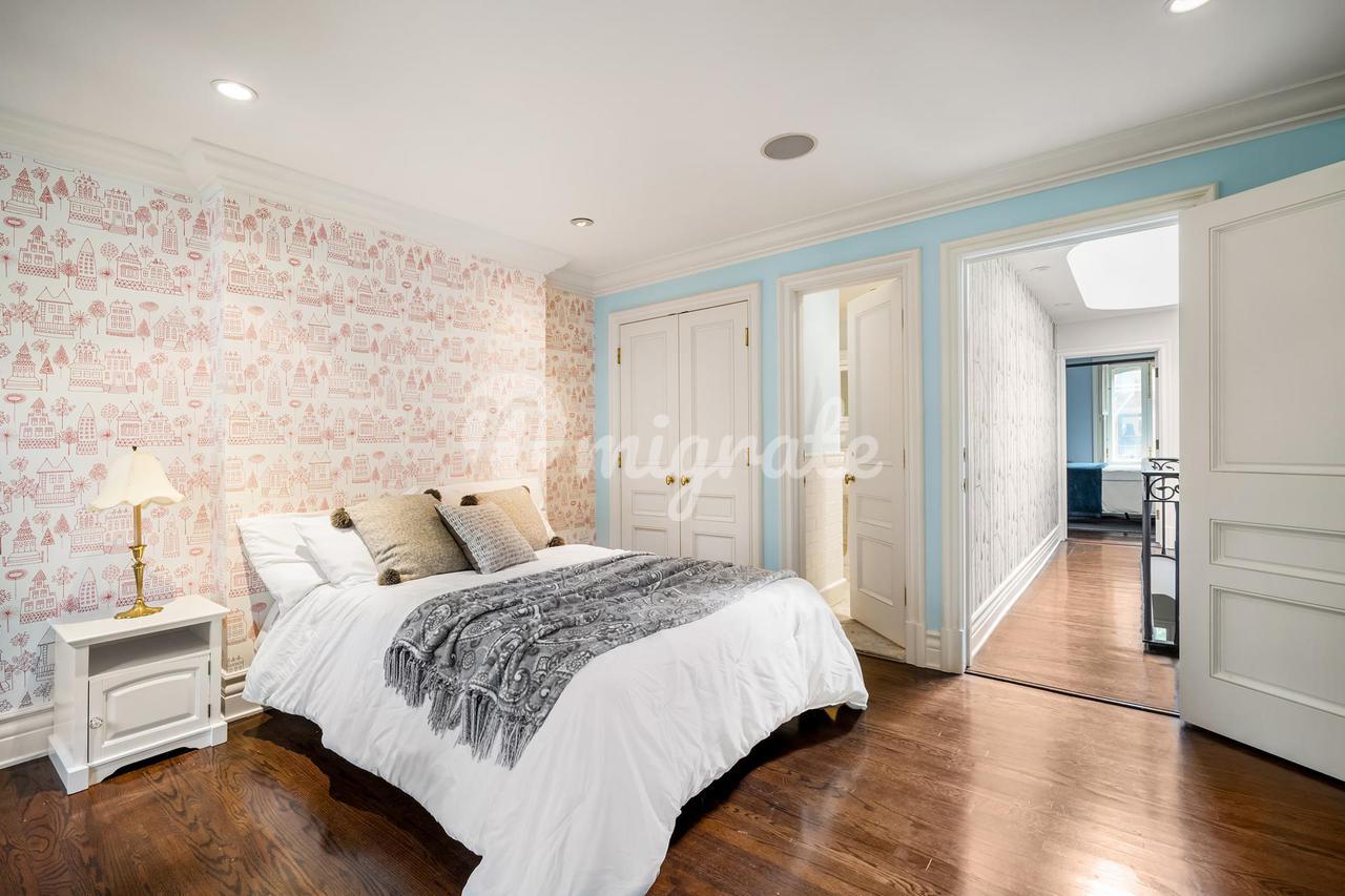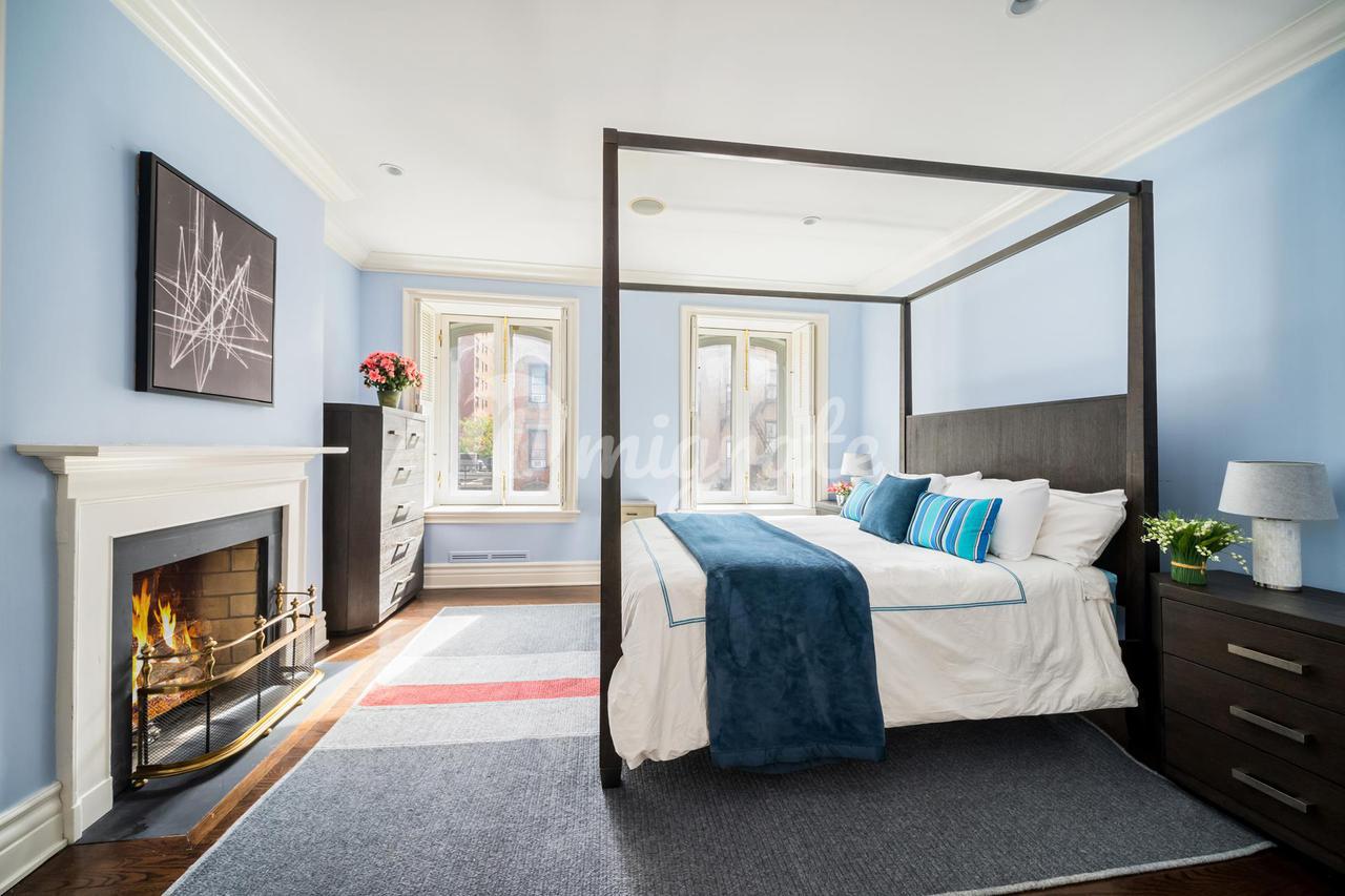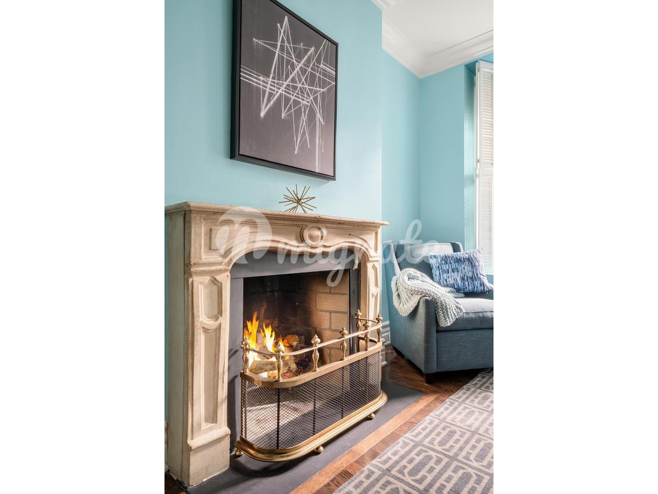 Третий этаж: Главная спальня на третьем этаже включает в себя залитую солнцем переднюю спальню, два камина, гардеробную с потрясающими встроенными шкафами, ящиками и полками, отдельный туалет с биде и большую ванну-джакузи. Все окна имеют двойное остекление, что обеспечивает тишину вашего личного убежища с улицы внизу. Четвертый этаж: Верх закругленной лестницы наполнен солнечным светом из огромного просвета наверху, создавая теплое приглашение уединиться в двух тихих спальнях на верхнем этаже. В каждой спальне есть два больших окна с двойным остеклением, много места для гардероба и полноразмерные ванные комнаты.