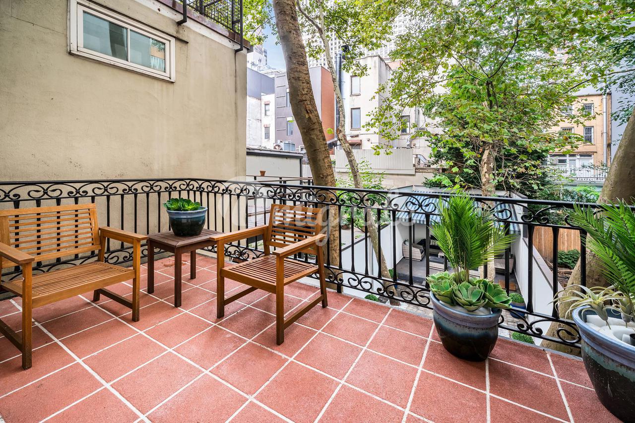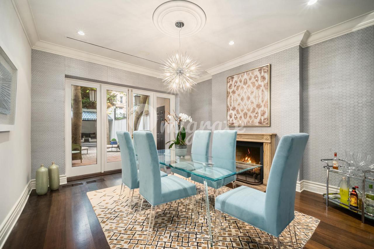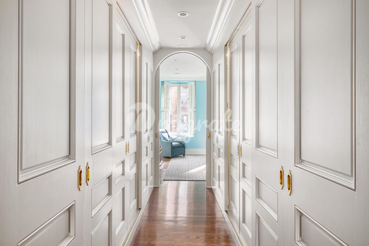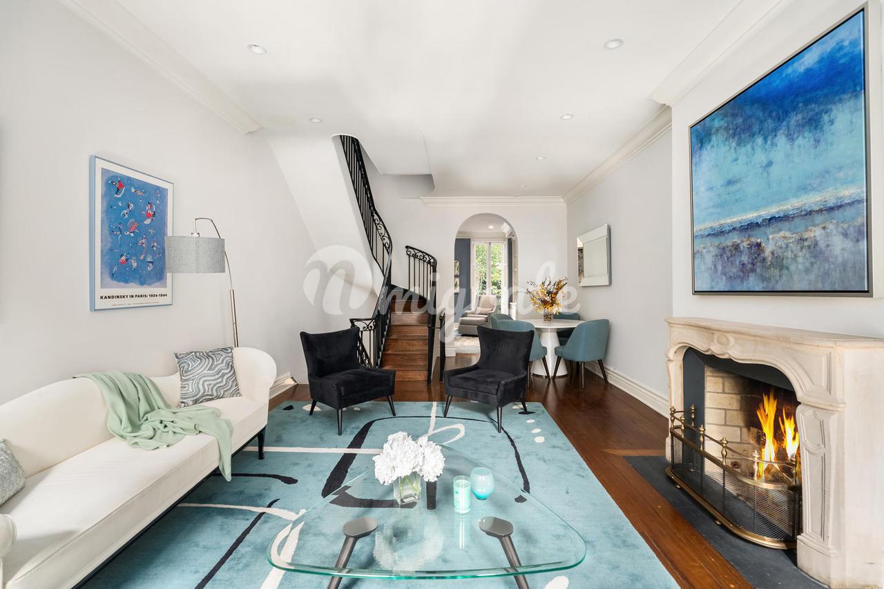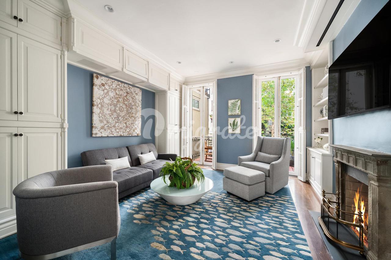 Салонный этаж: в гостиной на втором этаже, выходящей на юг, есть большой каменный камин и высокие французские двери, которые открываются на два драгоценных балкона Джульетты с видом на 52-ю улицу. Пройдите через арочный дверной проем в задней части, чтобы найти медиа-зал с собственным камином, изготовленными на заказ стеллажами и французскими дверями, которые ведут в изысканное пространство для утреннего кофе с ежедневной газетой: терракотовая веранда с видом на сад.