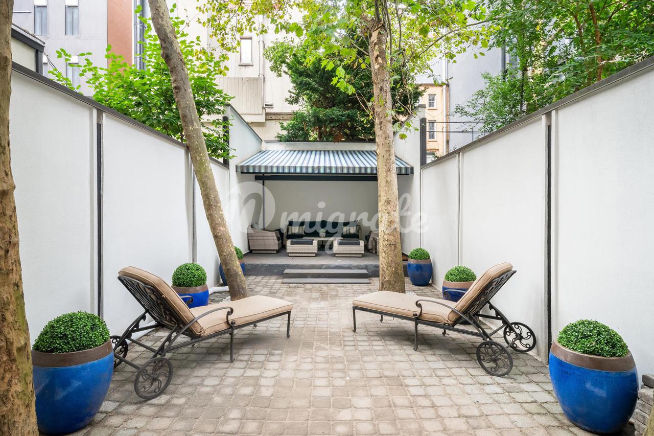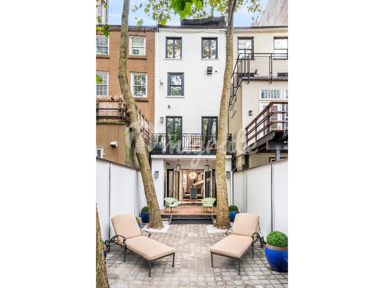 Этаж с садом: войдите в этот величественный таунхаус через огороженный двор, выложенный каменной плиткой, в изящное формальное фойе. На уровне сада находится кухня шеф-повара, отделенная от основного помещения раздвижными дверями, в которой есть шестиконфорочная плита Viking с двойной духовкой и вытяжкой, посудомоечная машина Miele и холодильник SubZero. В задней части первого уровня находится просторная формальная столовая с камином и стеной со стеклянными дверями, ведущими в частное открытое пространство. Пройдите через эти двери в 50-футовый сад, который отражает простое великолепие Нью-Йорка рубежа веков: прекрасный терракотовый внутренний дворик, длинная элегантная мощеная каменная терраса и беседка, служащая местом для отдыха на свежем воздухе. номер. Все это и четыре полностью взрослых платана окружены высокими оштукатуренными стенами, которые обеспечивают уединение в саду и заставят вас забыть о том, что это вдохновляющее и естественное семейное и развлекательное пространство расположено в самом сердце Мидтауна.