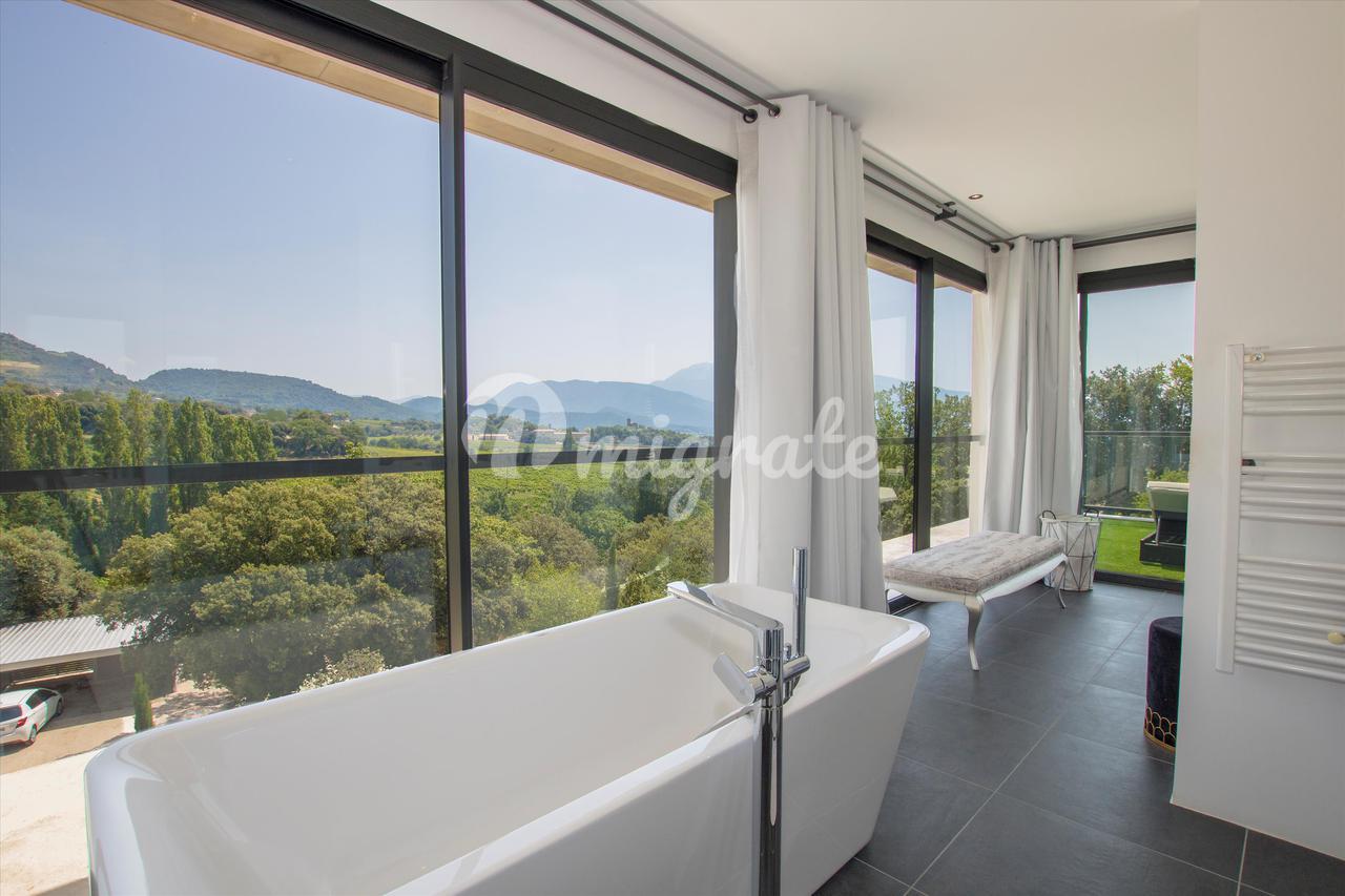 Расположен на участке земли ок. 0,11 га с бассейном и панорамным видом на Мон-Ванту, Дентель-де-Монмирай и Баронни. Это свойство ок. 155 кв м предлагает на 3 уровнях большую гостиную с оборудованной кухней, 2 спальни с ванными комнатами и частные террасы. Существует еще одна главная спальня с ванной комнатой и террасой с панорамным видом на ок. 20 кв.м. Расположенный в прекрасном зеленом месте, полном трюфельных дубов и прованских растений. Существует также бассейн с подогревом, граничащий с большой деревянной террасой.