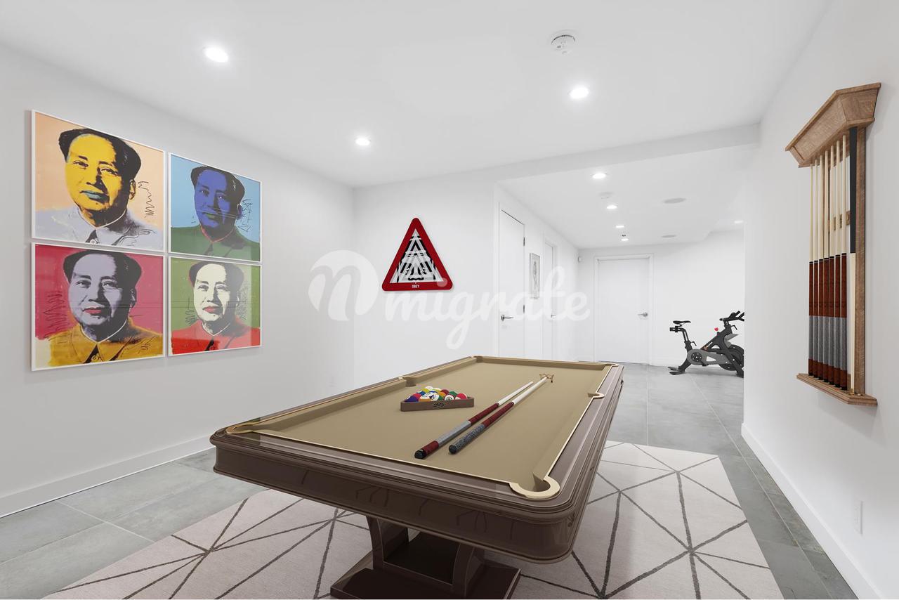 Нижний этаж с открытой планировкой завершает дом, предоставляя еще больше жилого или развлекательного пространства и включает в себя туалетную комнату и прачечную с полноразмерной стиральной машиной LG и сушилкой. Кроме того, в доме есть система пожарной безопасности ADT, а также передние и задние камеры Nest. Хранилище CitiBin удобно расположено перед домом для мусора и переработки вместе с контейнером для пакетов для доставки.
