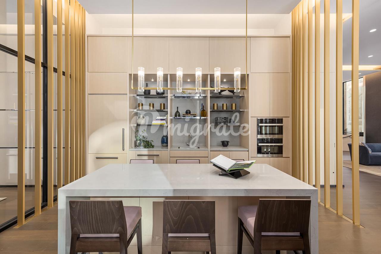 Мечта артиста - потолки 48B в гостиной и на террасе-лоджии достигают 20 футов. Массивные окна от пола до потолка заливают дом площадью 2333 кв.м светом через полы из американского белого дуба шириной 5 1/2 дюйма. Кухня, изготовленная на заказ и подходящая для шеф-повара любого уровня, оснащена полным набором бытовой техники Miele из нержавеющей стали, включая выдвижную вытяжку и охладитель для вина, а также отделана полированными мраморными плитами Calacatta Saccheli, включая центральный островок с водопадными краями, шкафы из светлого окрашенного белого дуба и звукоизолированный утилизатор в мойка из нержавеющей стали Blanco с нижним креплением.
