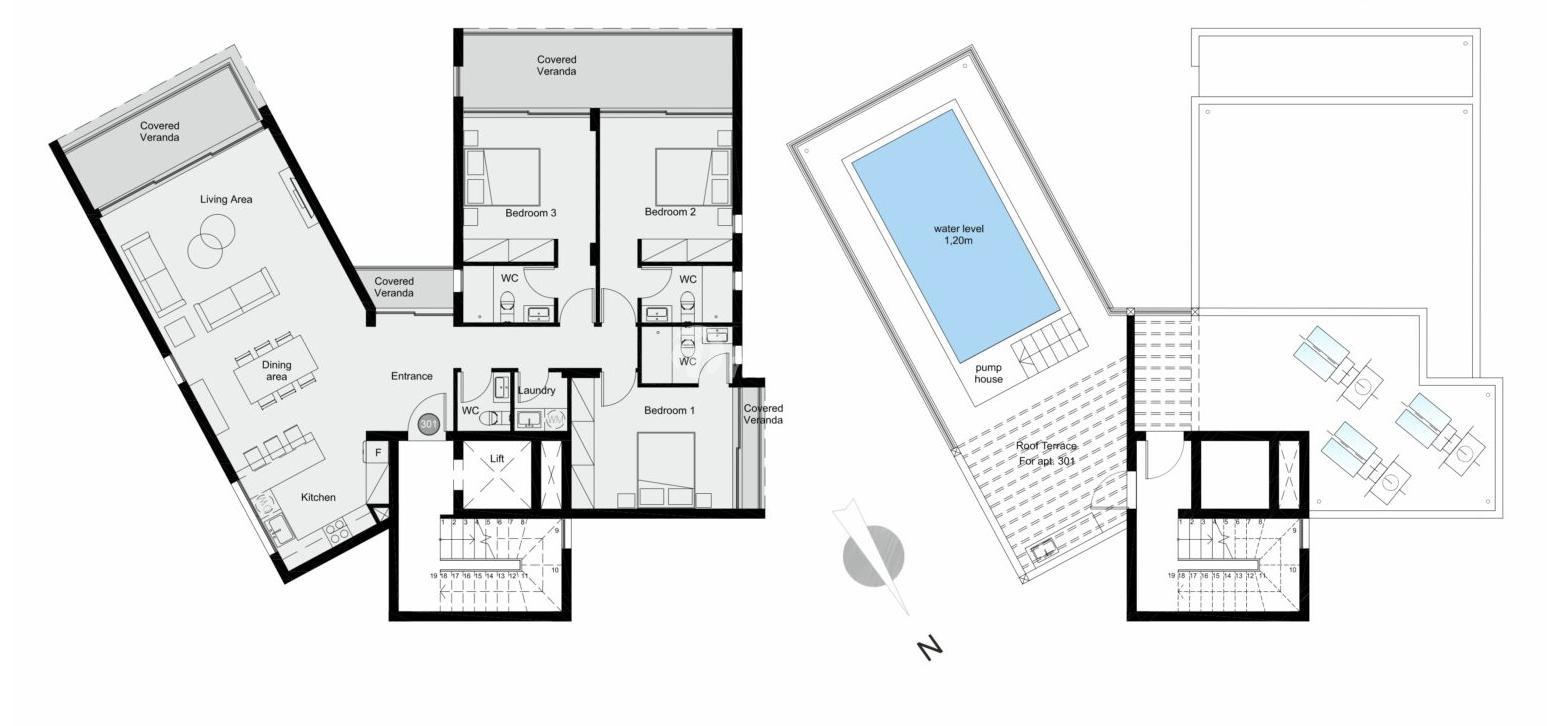 Современные линии здания и V-образный вид сверху придают ему уникальный вид. Всего в здании 3 этажа, на каждом из которых расположены апартаменты с 3 спальнями. Внутренние помещения каждой квартиры очень просторные, с пространством открытой планировки между кухней, обеденной зоной и гостиной зоной. Во всех спальнях есть отдельный туалет и ванная комната, а также выход на крытую веранду. Все апартаменты идентичны по планировке, за исключением пентхауса с большой открытой и полузакрытой террасой на крыше. Каждая квартира дополнена прачечной, гостевым туалетом и доступом к лифту, крытой парковкой и кладовой. Комплекс находится в непосредственной близости от моря, набережной и гавани Пафоса, торгового центра Kings Avenue и всех удобств в центре города...