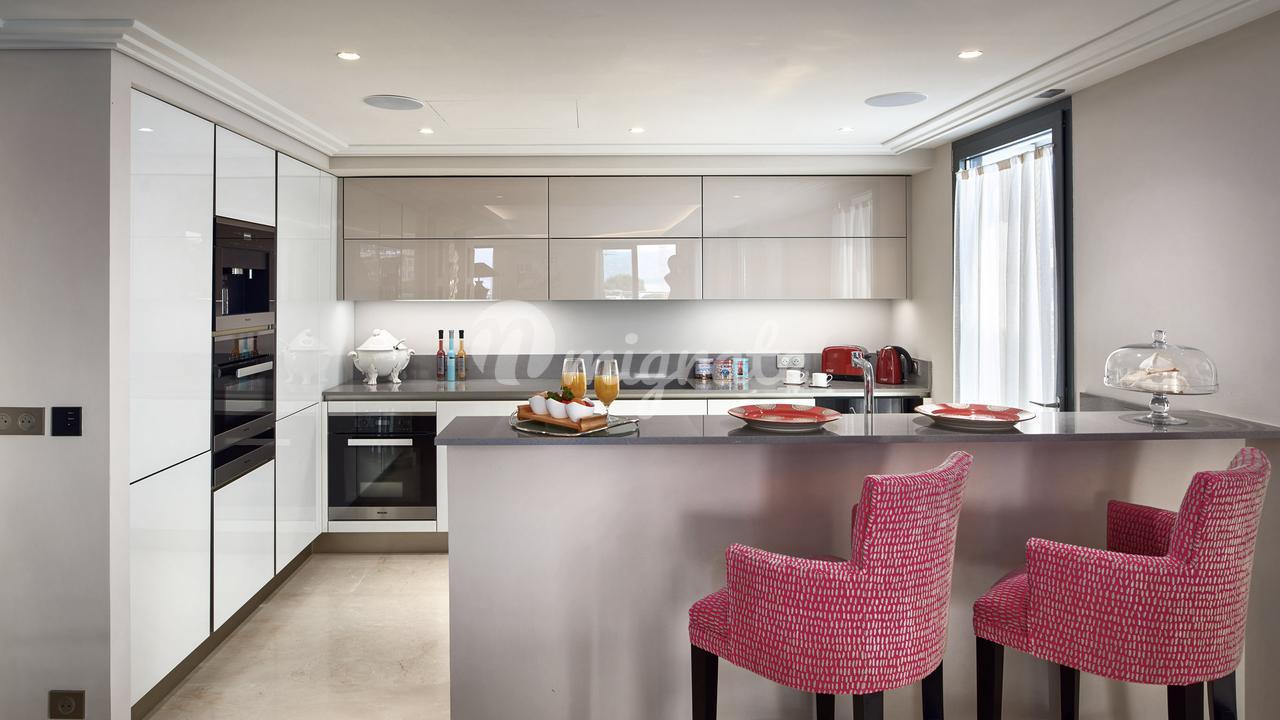 Элегантные апартаменты, расположенные в роскошной закрытой и охраняемой резиденции, включают в себя просторную гостиную зону, кухню, совмещенную со столовой, 3 спальни, 3 ванные комнаты, террасу. Встроенная кухня итальянского дизайна оснащена столешницей из кварца и техникой Siemens. В ванных комнатах установлены санитарная техника от Laufen, ванное оборудование от Hansgrohe. Апартаменты имеют систему комфортного охлаждения и обогрева, управление освещением Lutron, встроенную акустическую систему Bower and Wilkins. В апартаментах также есть прекрасная видовая терраса с деревянным настилом из бамбука. Доступен виртуальный 3D-тур.