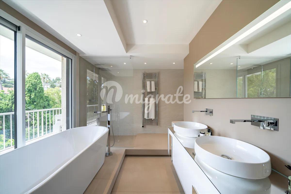 Апартаменты площадью 160 кв. м. включают в себя прихожую, большую совмещенную со столовой зону гостиную, оборудованную кухню, главную спальню с гардеробной и ванной комнатой, две спальни с собственными ванными комнатами, прекрасную террасу с видом на Средиземное море. Стоимость апартаментов также включает в себя подвальное помещение с гаражом.