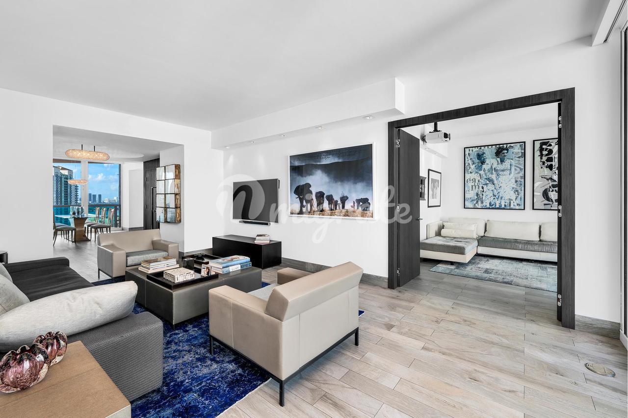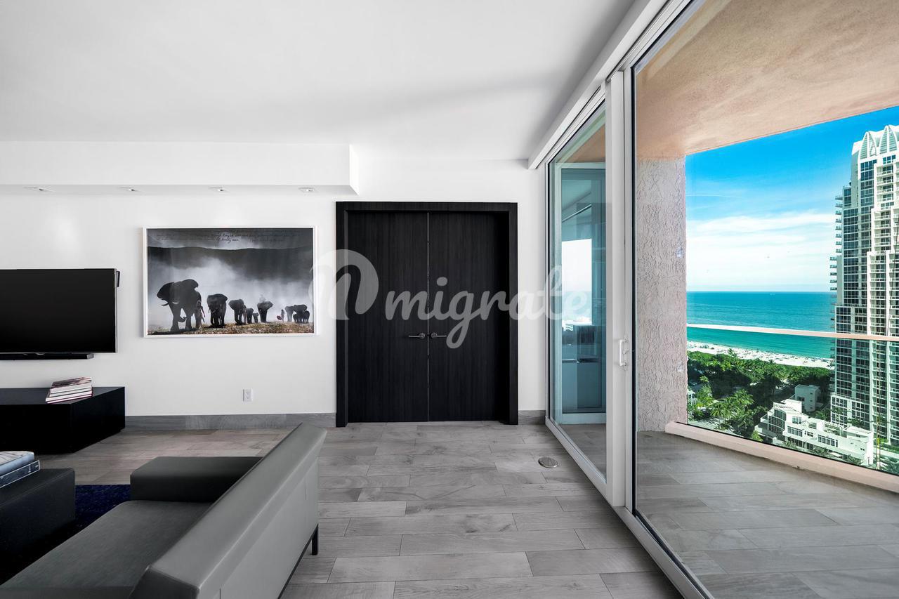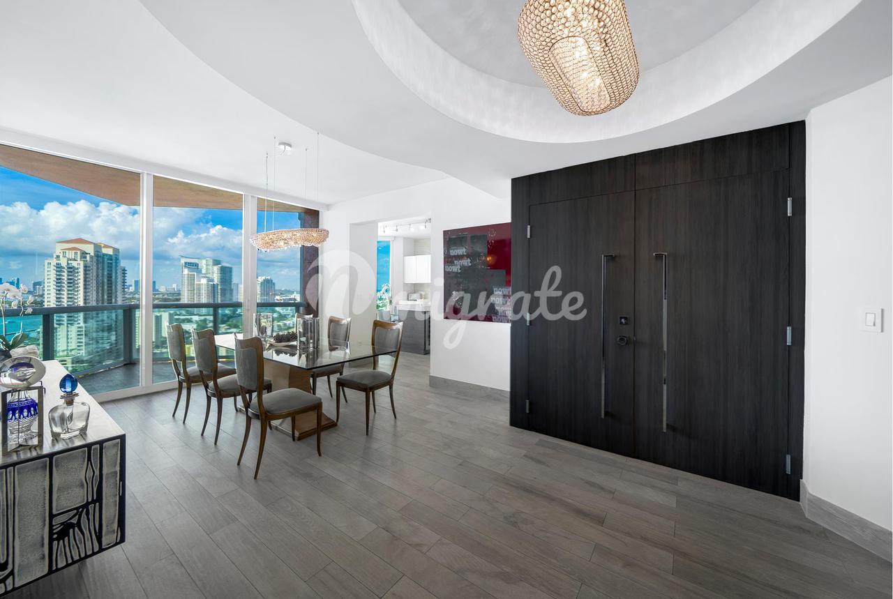 Полуприкрытый вестибюль приветствует вас в полностью профессионально спроектированном и отремонтированном доме. Впечатляющая резиденция на высоком этаже с восточной и западной террасами.. Наслаждайтесь панорамным видом от океана через Майами-Бич до потрясающего горизонта в центре Майами. Развлекайтесь со вкусом! Изготовленная на заказ кухня-столовая оснащена бытовой техникой Miele. остров и стеклянный столик. Фарфоровые полы по всей территории делают эту резиденцию одновременно вневременной и современной, а также простой в обслуживании. В кондоминиуме есть просторная третья спальня, которая в настоящее время используется в качестве медиа-комнаты с телевизором-проектором и экраном. Повсюду электронные абажуры. Основной люкс включает в себя великолепную ванную комнату с гидромассажем! Наслаждайтесь бассейнами, теннисом, парком для собак, ультрасовременным тренажерным залом и спа-салоном. Исследуйте стиль жизни SOFI с пляжем, ресторанами изысканной кухни и парком Саут-Пойнт.