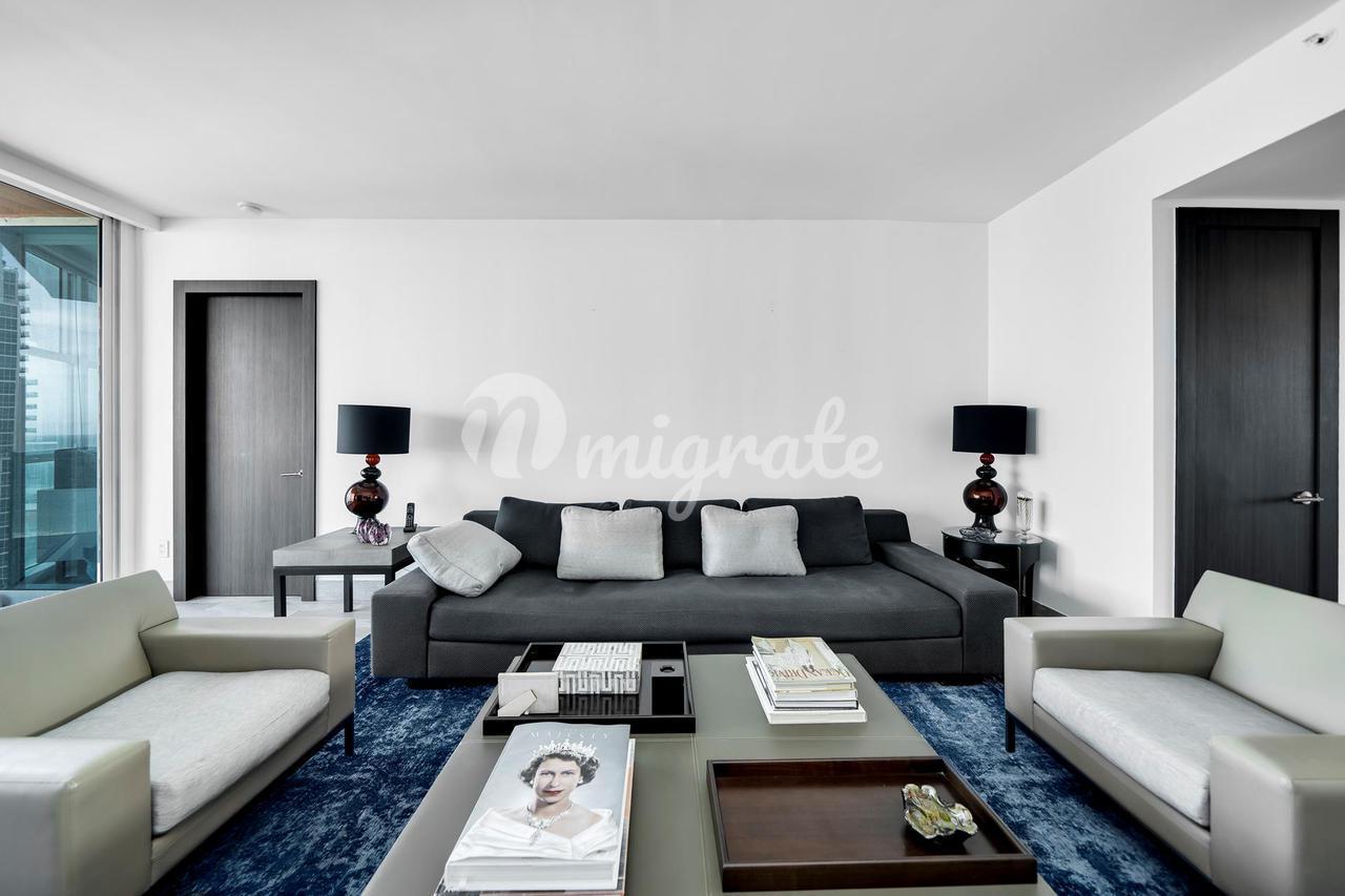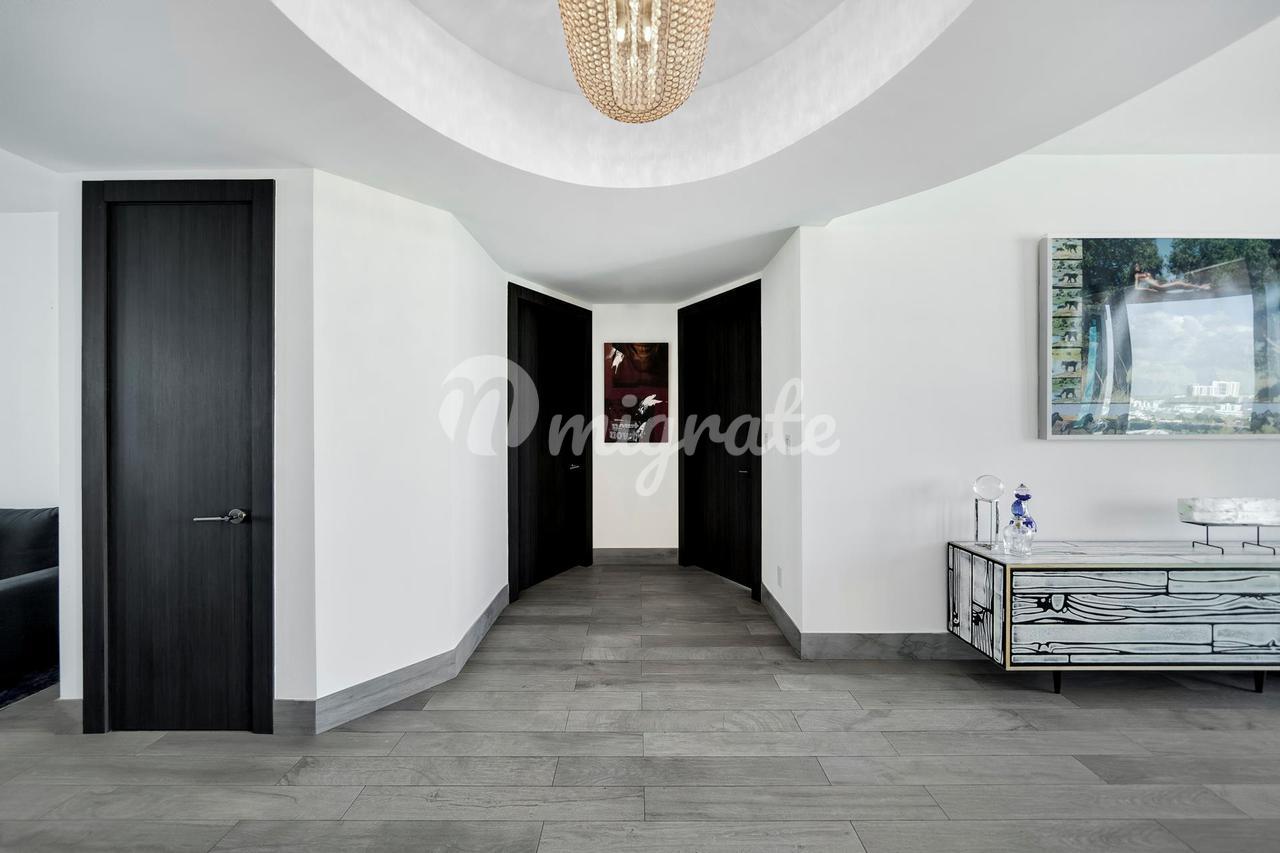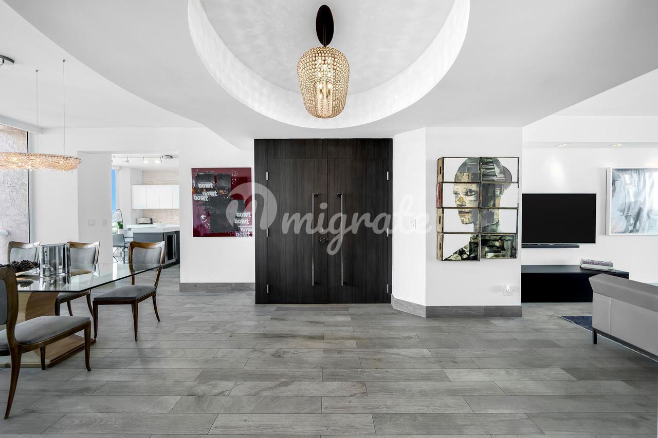 Полуприкрытый вестибюль приветствует вас в полностью профессионально спроектированном и отремонтированном доме. Впечатляющая резиденция на высоком этаже с восточной и западной террасами.. Наслаждайтесь панорамным видом от океана через Майами-Бич до потрясающего горизонта в центре Майами. Развлекайтесь со вкусом! Изготовленная на заказ кухня-столовая оснащена бытовой техникой Miele. остров и стеклянный столик. Фарфоровые полы по всей территории делают эту резиденцию одновременно вневременной и современной, а также простой в обслуживании. В кондоминиуме есть просторная третья спальня, которая в настоящее время используется в качестве медиа-комнаты с телевизором-проектором и экраном. Повсюду электронные абажуры. Основной люкс включает в себя великолепную ванную комнату с гидромассажем! Наслаждайтесь бассейнами, теннисом, парком для собак, ультрасовременным тренажерным залом и спа-салоном. Исследуйте стиль жизни SOFI с пляжем, ресторанами изысканной кухни и парком Саут-Пойнт.