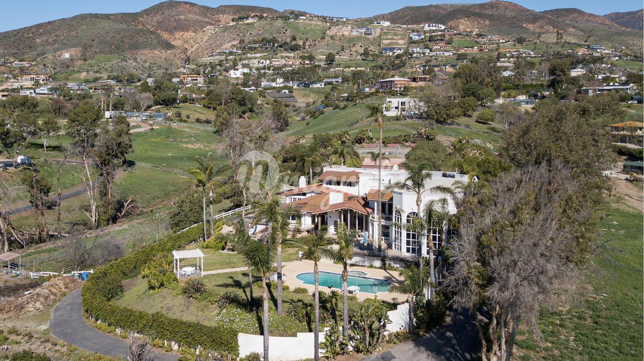 Ультра-частный комплекс с панорамным видом на океан и белой водой, расположенный в парке Малибу. Это поместье, занимающее более 5,4 акров земли, предлагает курортные удобства. Главный дом окружает внутренний двор в средиземноморском стиле с историческим оливковым деревом. Семь из 8 спален имеют ванные комнаты, есть примыкающий люкс и две отдельные студии, идеально подходящие для гостей и / или персонала. Другие удобства: сауна, тренажерный зал/балетная танцевальная студия, библиотека, домашние офисы, музыкальные студии/студии звукозаписи и бассейн/спа. Задняя часть поместья была разработана для любителей верховой езды: более мили дорог окружают объекты, в том числе амбар на 10 стойл, загоны, арену, развороты и пастбища с видом на океан.