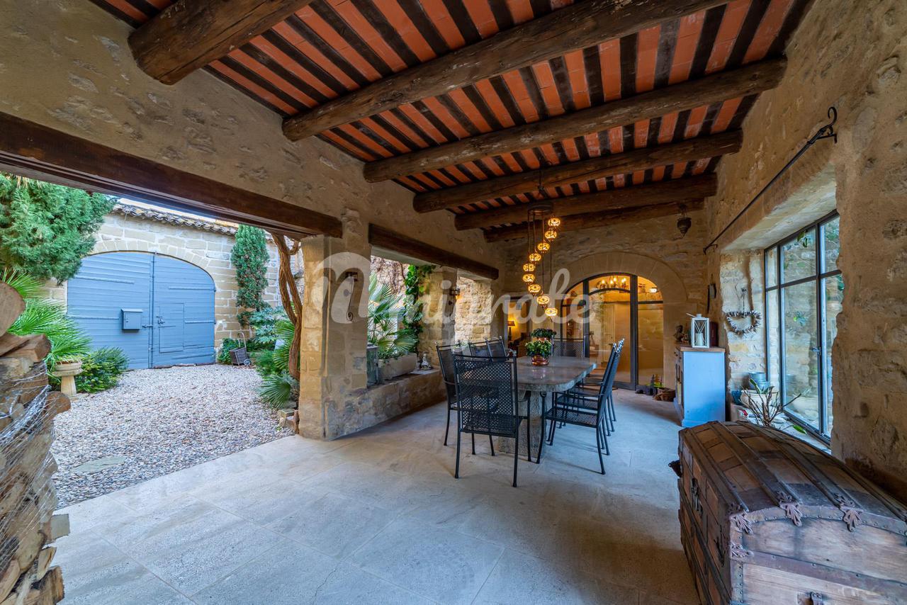 Этот впечатляющий деревенский дом, который частично восходит к 15 веку, предлагает более 300 квадратных метров жилой площади вокруг уединенного внутреннего дворика и сада на возвышенной террасе с бассейном и беспрепятственным видом. Значительная реконструкция была проведена с сохранением оригинальных черт и духа собственности. Дом устроен как основное имущество, состоящее из пяти просторных спален, каждая с душевой комнатой. . Квартира, автономная, но соединенная с основным домом, идеально подходит для гостей или для сдачи в аренду. Летний сад с бассейном, летней кухней и красивой средиземноморской зеленью - это место мечты. Крыльцо и великолепная полуоткрытая терраса ведут к входному двору, который несет в себе все признаки южно-французского дома. Расположенный в деревне с магазинами в 5 минутах от Юзеса, этот дом редко встречается на рынке, и его настоятельно рекомендуется посмотреть.