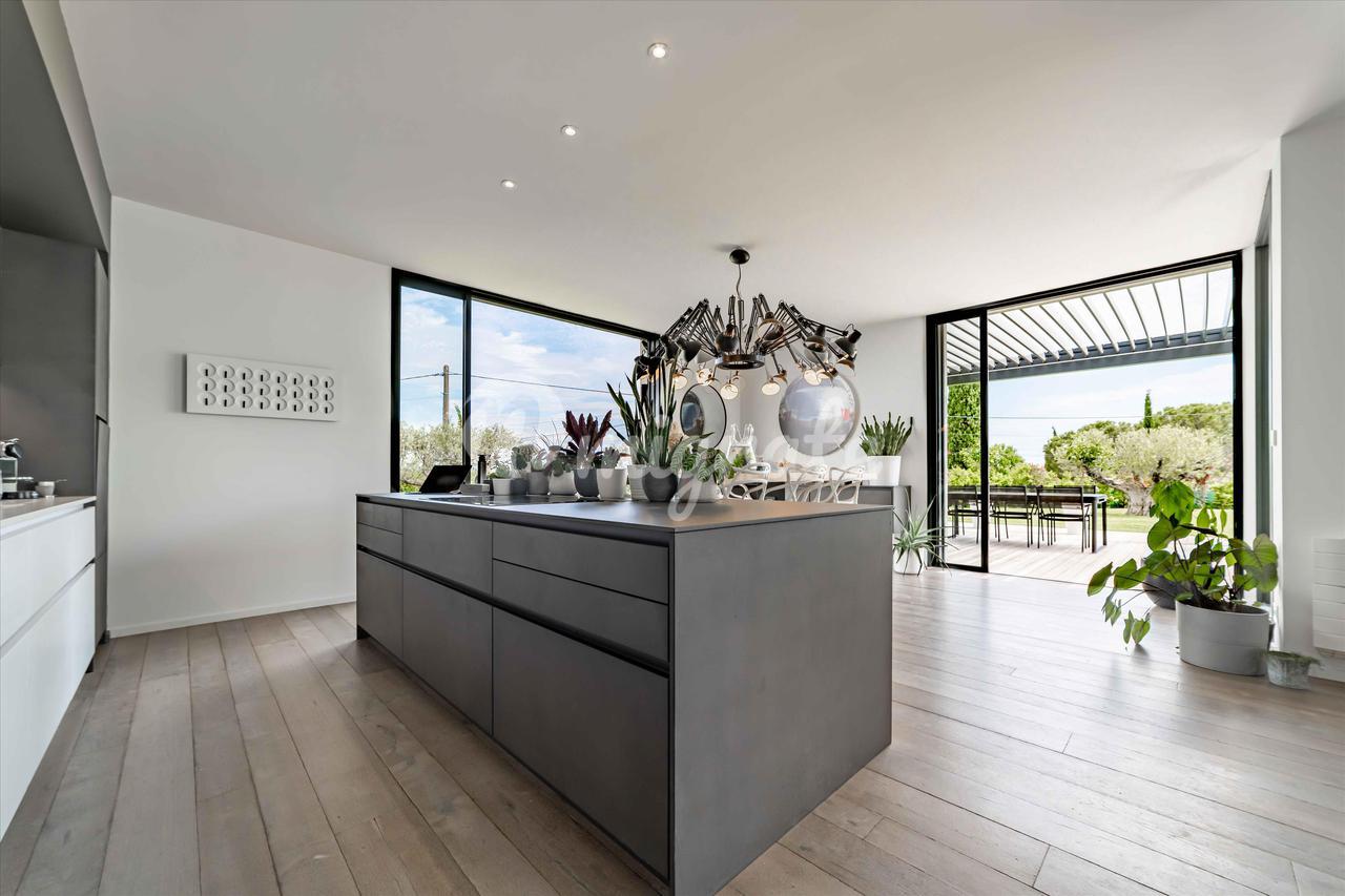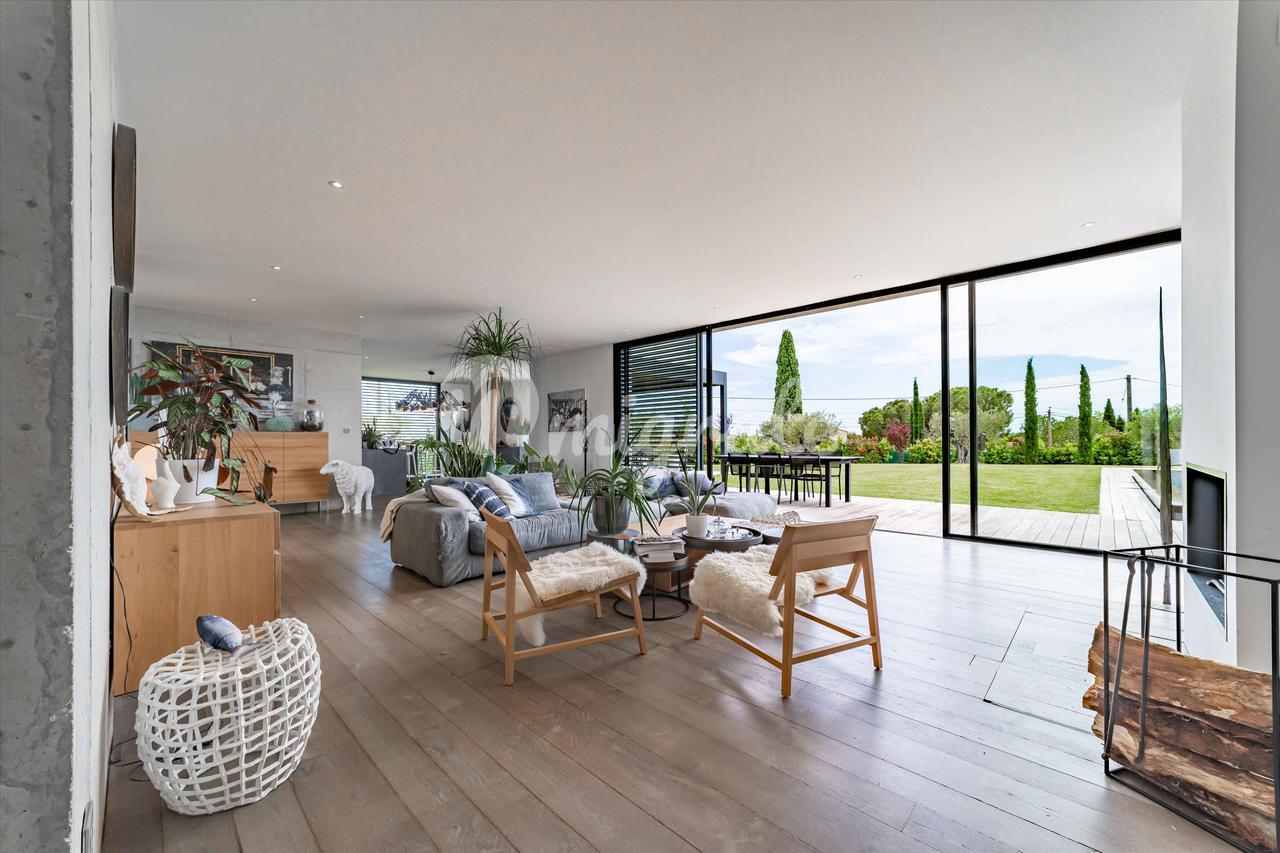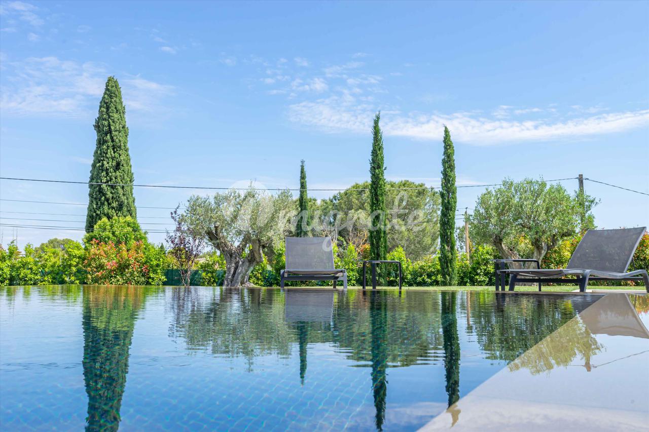 На первом этаже расположены гостиные, которые выходят к бассейну; большая гостевая спальня и ванная комната завершают этот уровень. Наверху из впечатляюще просторной главной спальни открывается волшебный вид на сельскую местность и сад. Есть также вторая спальня и кабинет (потенциальная четвертая спальня) на юге на этом уровне. На цокольном этаже есть гараж на две машины и несколько помещений, которые можно использовать (потенциальный домашний кинотеатр, тренажерный зал…). Домашняя автоматизация, биоклиматические перголы, раздвижные панорамные окна, сигнализация, высокотехнологичное отопление: все создано для комфорта и простоты. Сад площадью 3000 кв. м засажен столетними оливковыми деревьями, а большой зеркальный бассейн дополняет эту собственность.