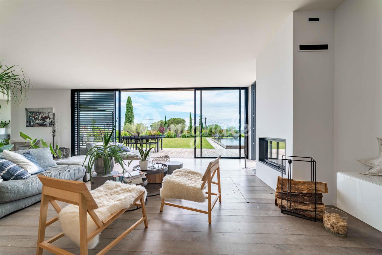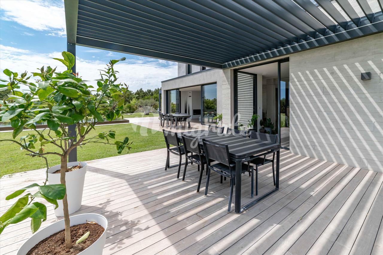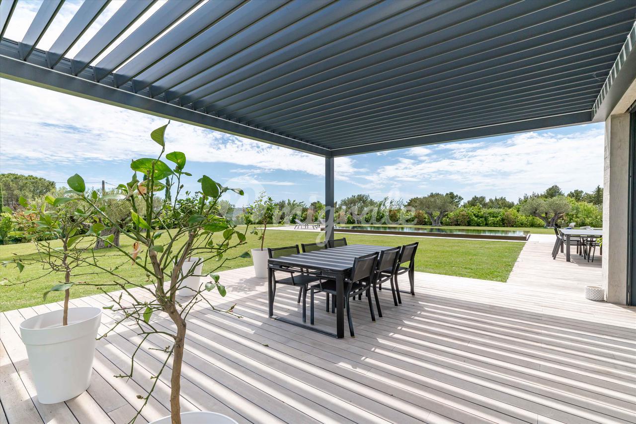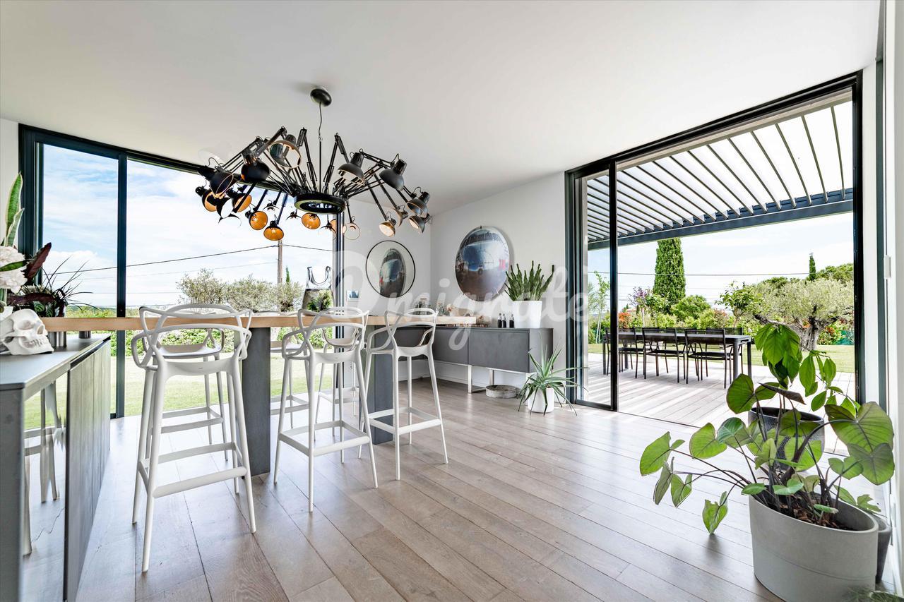 На первом этаже расположены гостиные, которые выходят к бассейну; большая гостевая спальня и ванная комната завершают этот уровень. Наверху из впечатляюще просторной главной спальни открывается волшебный вид на сельскую местность и сад. Есть также вторая спальня и кабинет (потенциальная четвертая спальня) на юге на этом уровне. На цокольном этаже есть гараж на две машины и несколько помещений, которые можно использовать (потенциальный домашний кинотеатр, тренажерный зал…). Домашняя автоматизация, биоклиматические перголы, раздвижные панорамные окна, сигнализация, высокотехнологичное отопление: все создано для комфорта и простоты. Сад площадью 3000 кв. м засажен столетними оливковыми деревьями, а большой зеркальный бассейн дополняет эту собственность.