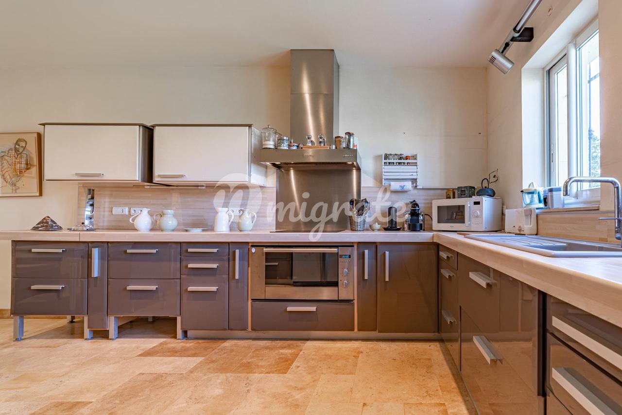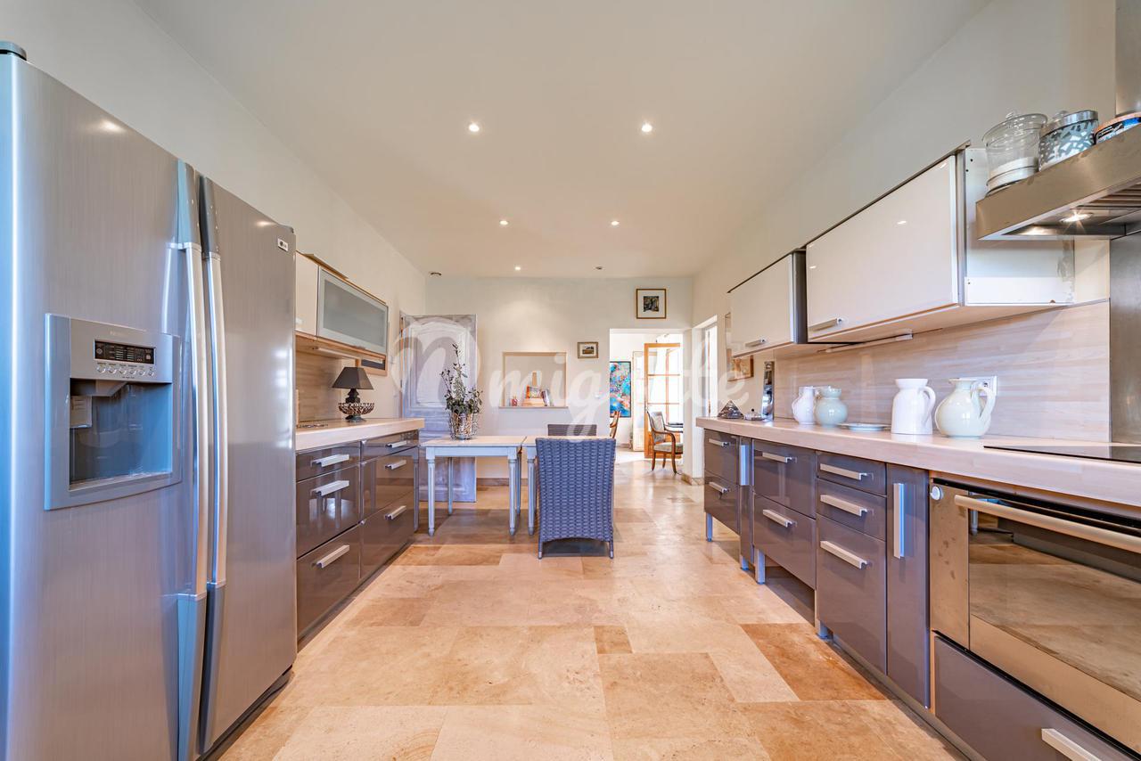 Эта вилла у ворот города имеет жилую площадь ок. 270 кв.м., Г-образная форма открывается на запад и окружена парком площадью 3000 кв.м. Со стороны сада есть бассейн свободной формы, а большие взрослые деревья создают затененные пространства. Дневная зона включает в себя оборудованную кухню, большую столовую и двойную гостиную. Смежная спальная зона состоит из 3 спален и 2 ванных комнат. Над гаражом есть две комнаты и есть возможность стать 4-й спальней. Ожидается, что работы по обновлению восстановят собственность, предлагая много преимуществ. Дом продается частично меблированным.